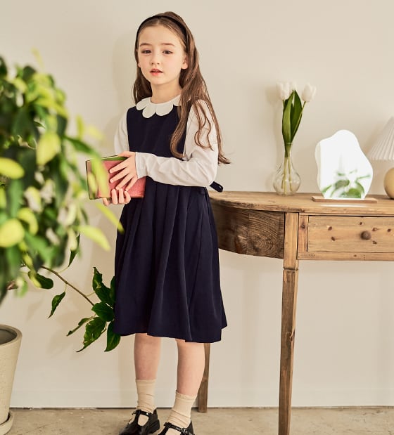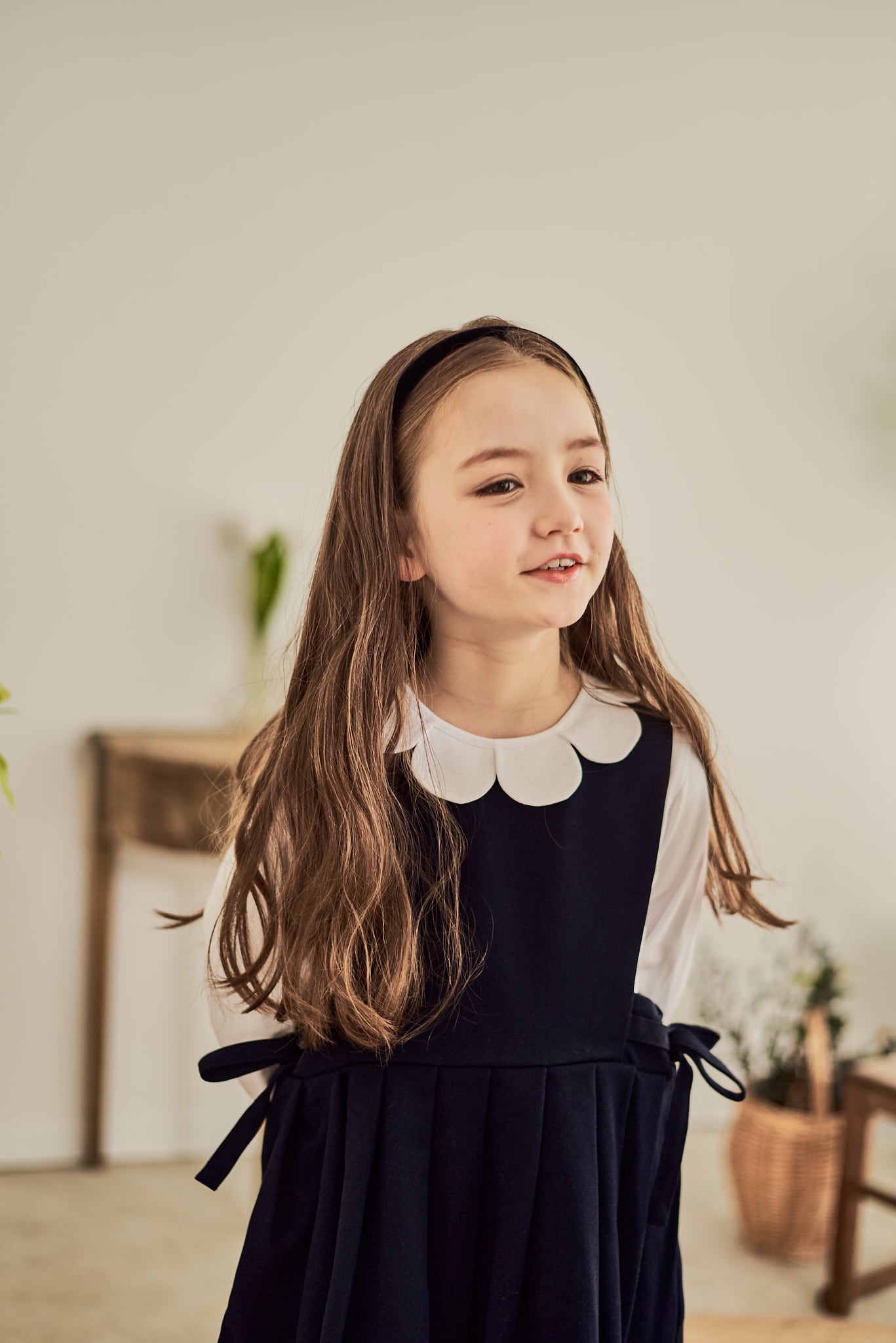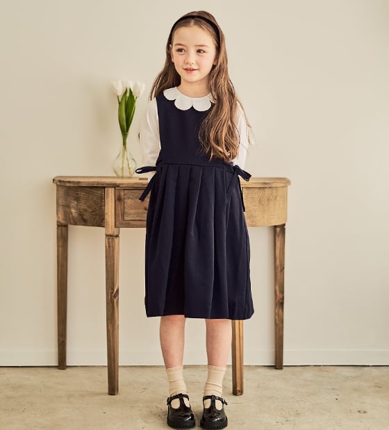 ☑︎ペタル襟Tシャツ×サイドリボンジャンパースカート