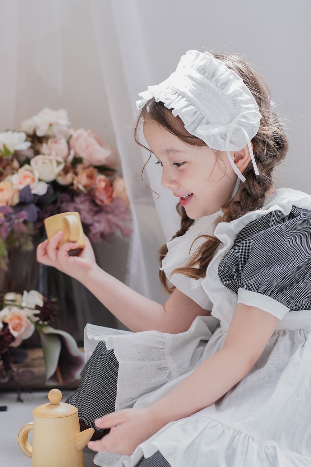 落ち着いたお色味ながらもエプロンのレースやヘッドドレスのリボンが可愛さを引き立たせています。
