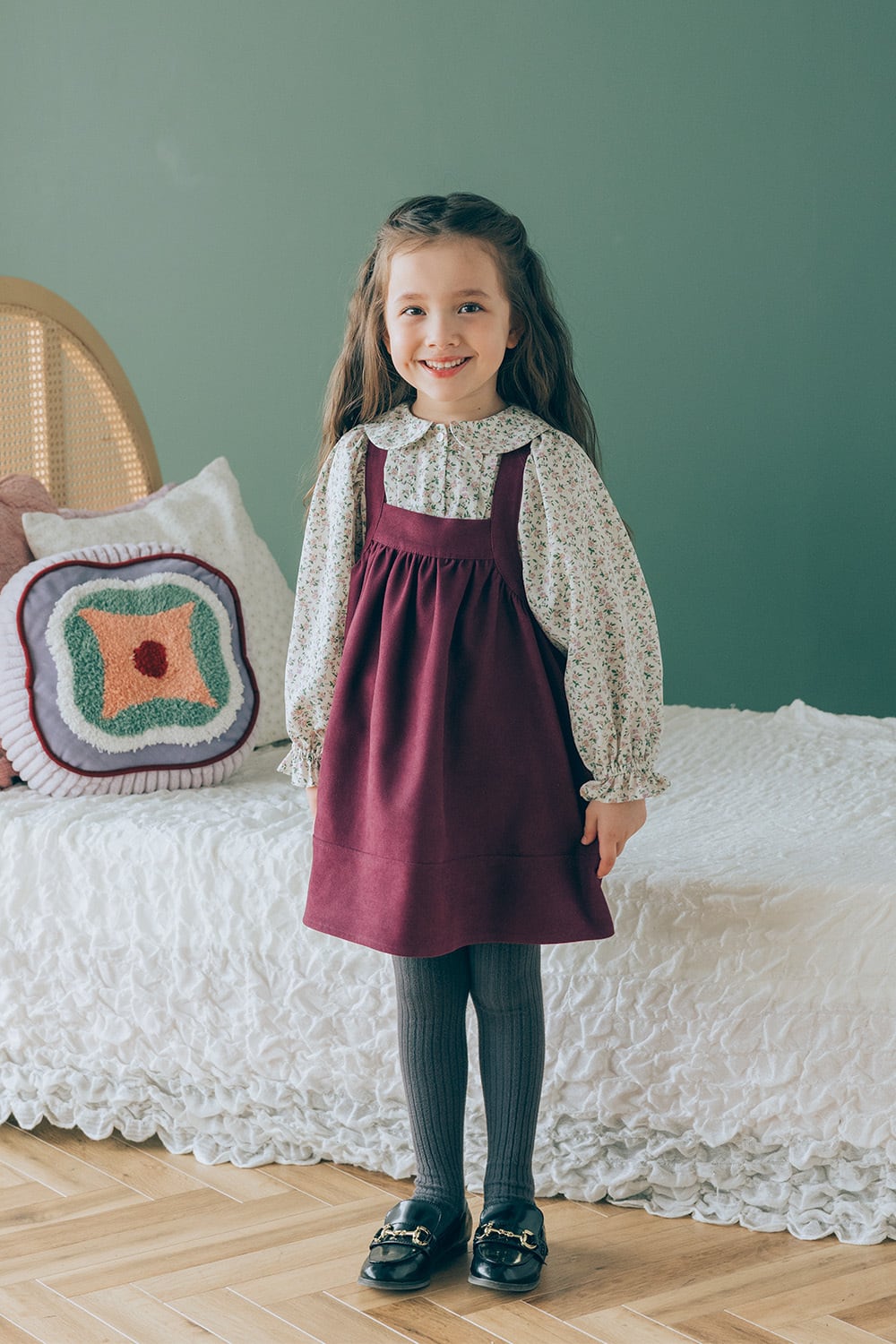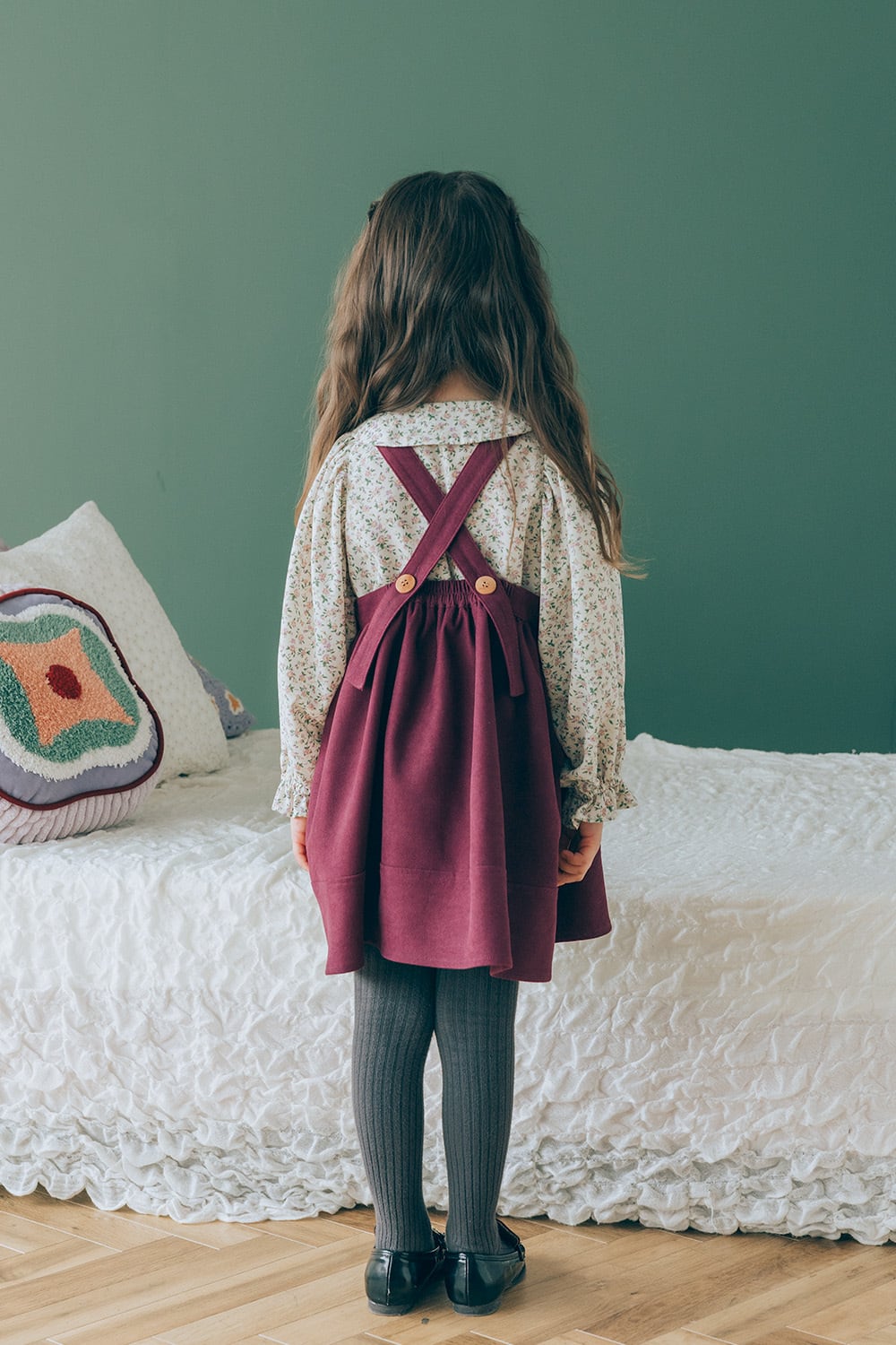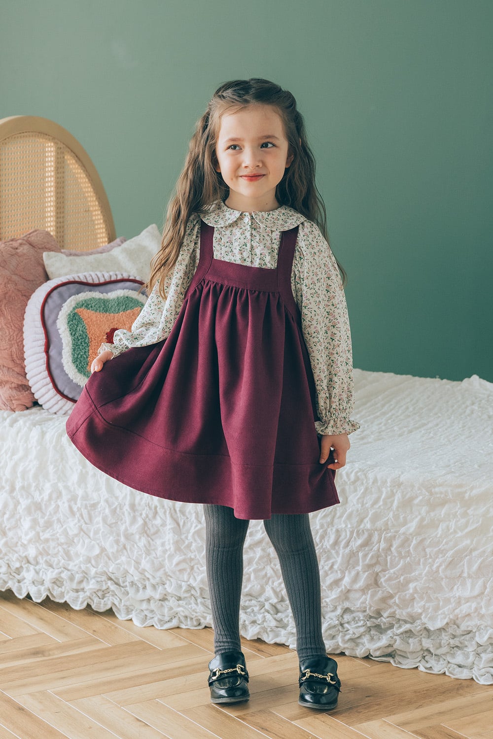 秋冬に着たくなるこっくりとしたパープルのジャンパースカート。