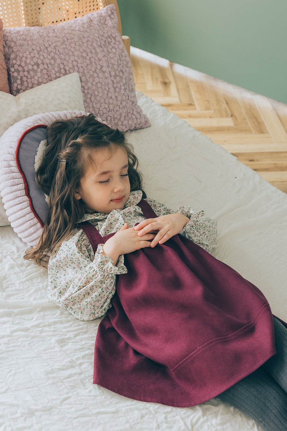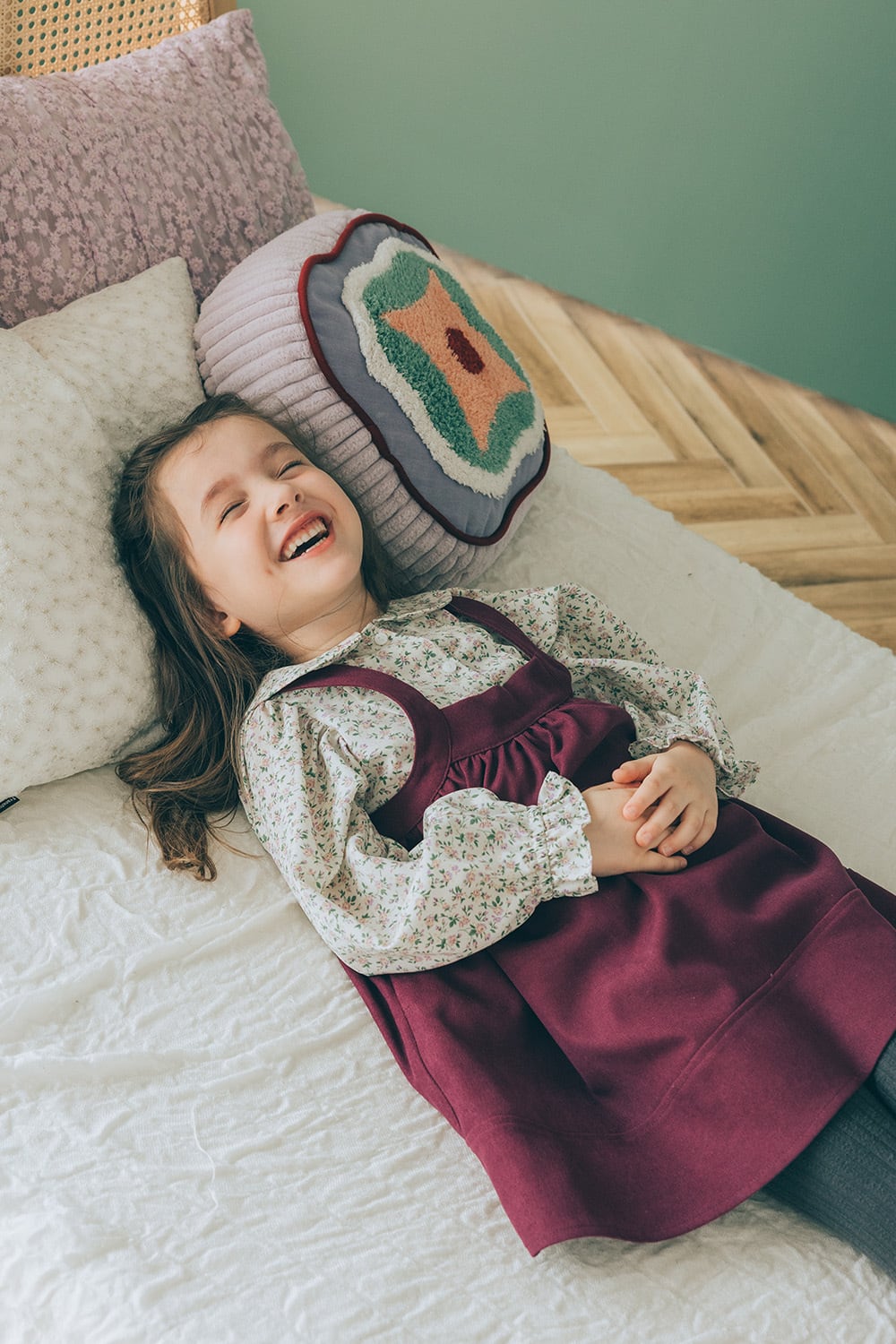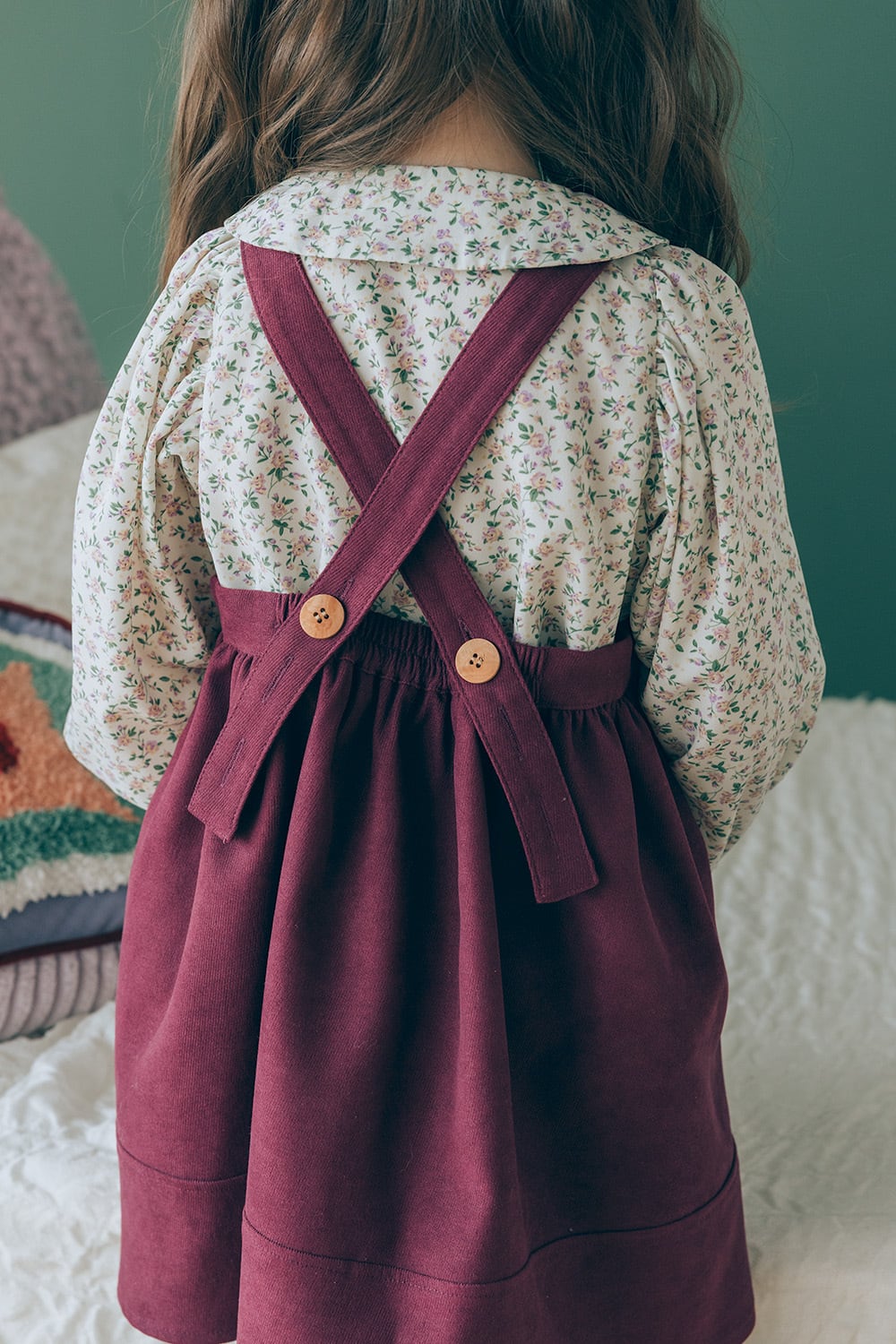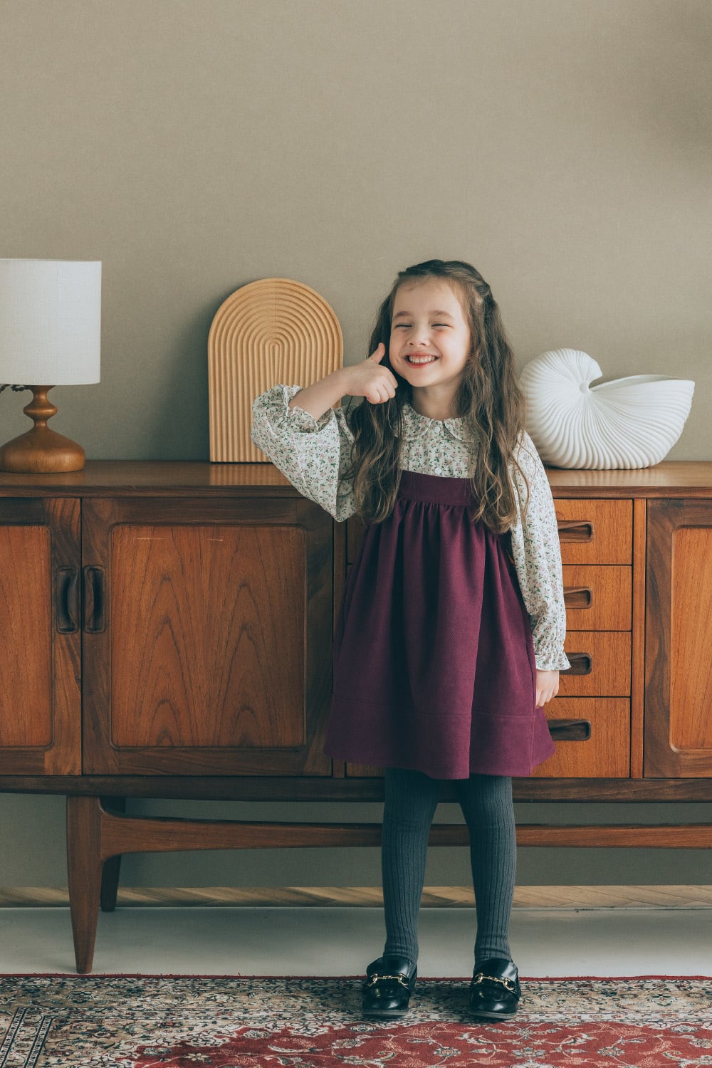 秋冬に着たくなるこっくりとしたパープルのジャンパースカート。