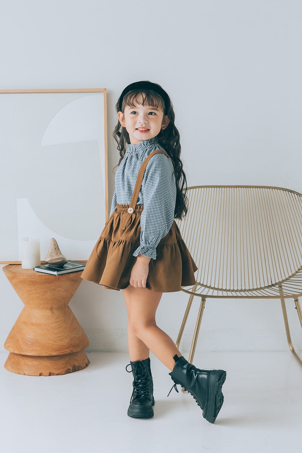 スカートの下にブルマが付いているので、元気なお子様でも下着が見えず安心して着ていただけます。ブルマはスカートと同じ生地なのでめくれてしまった時も違和感がないのも嬉しいポイント!
