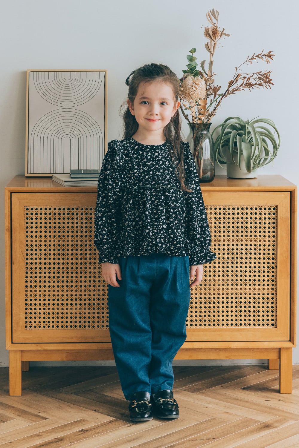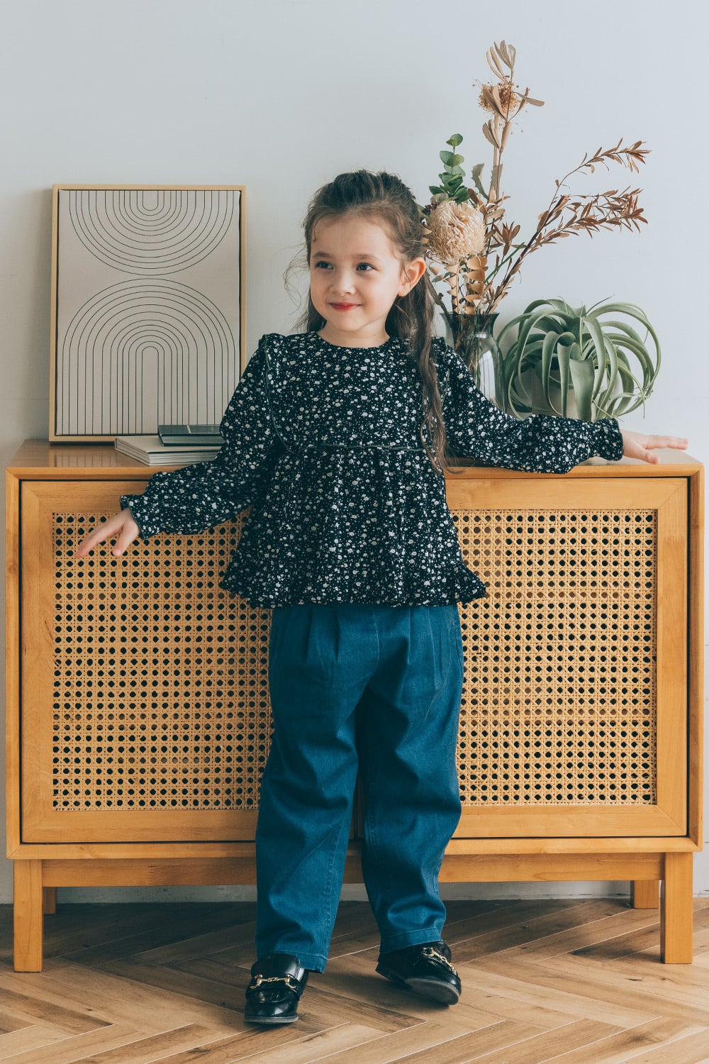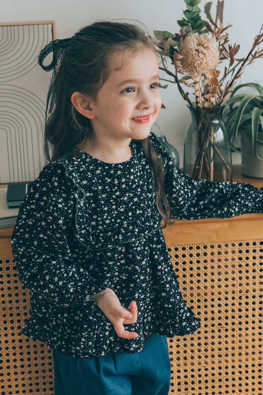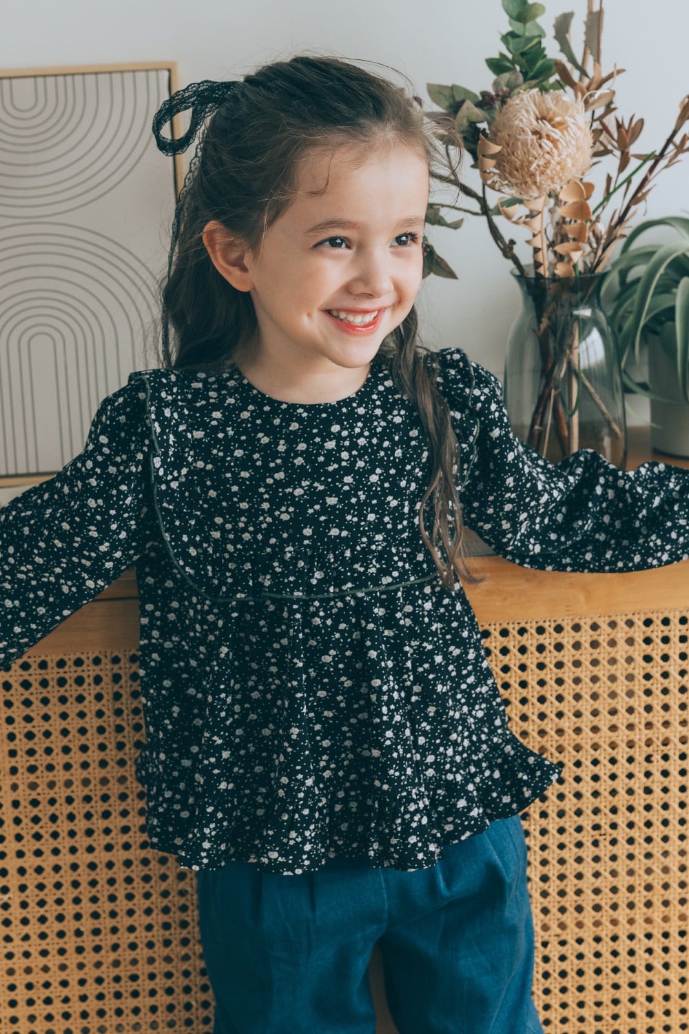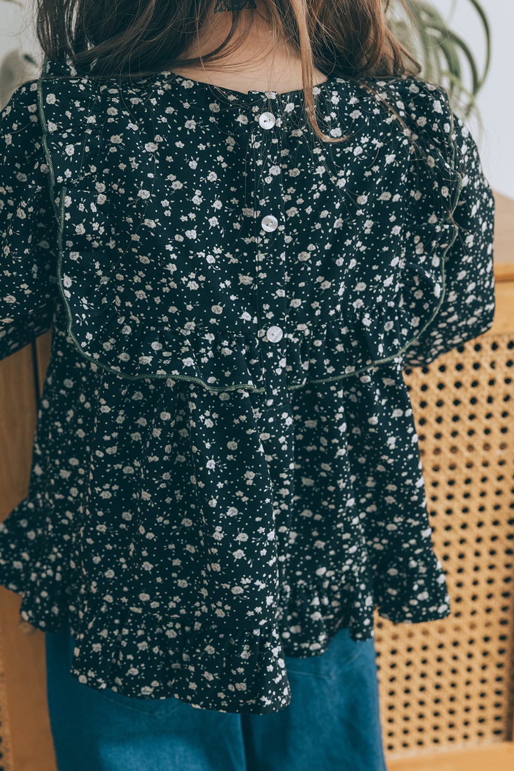 フラワーフリルブラウス<Black flower>