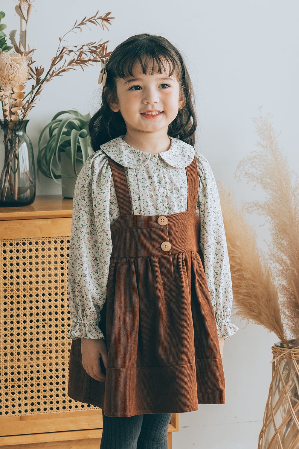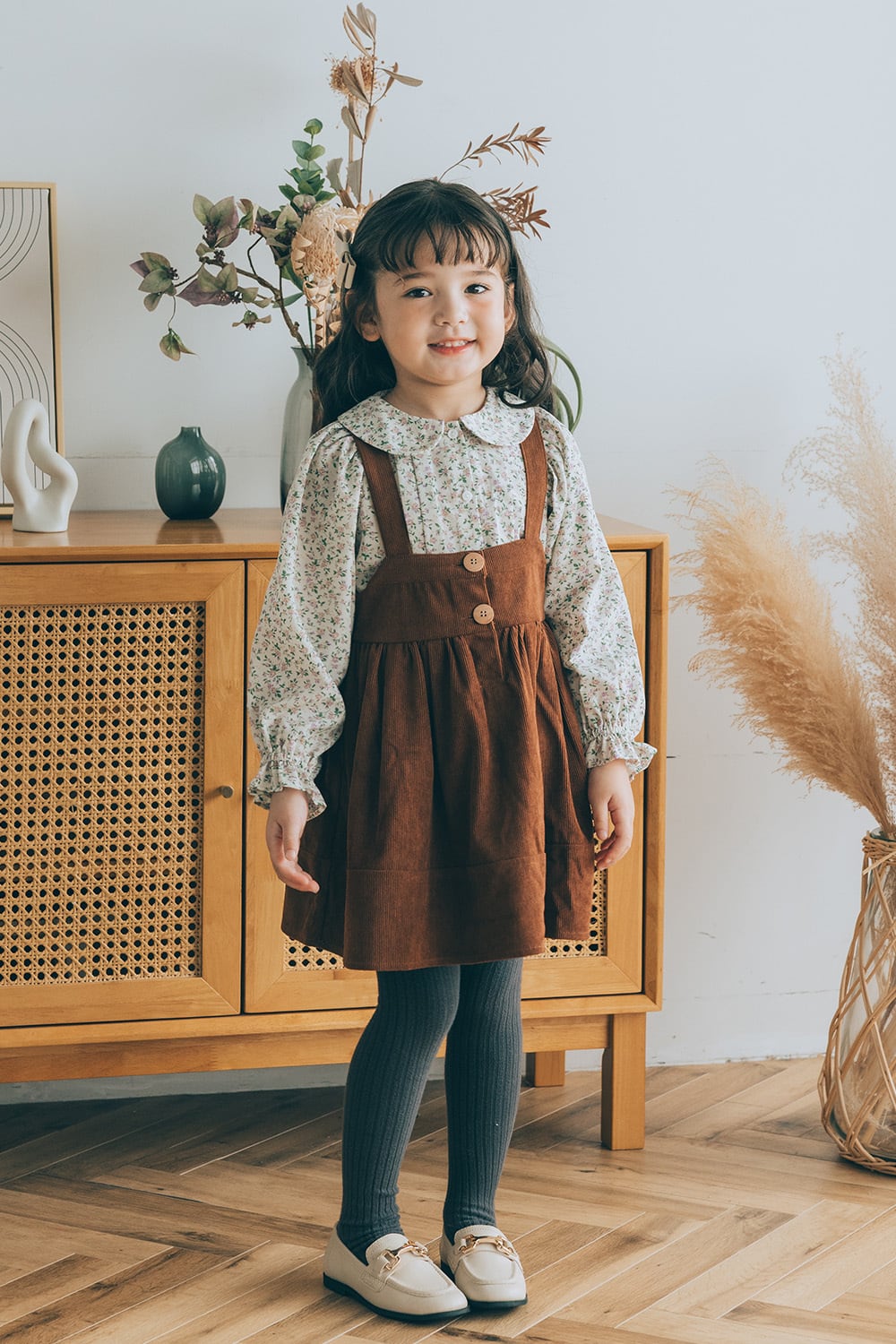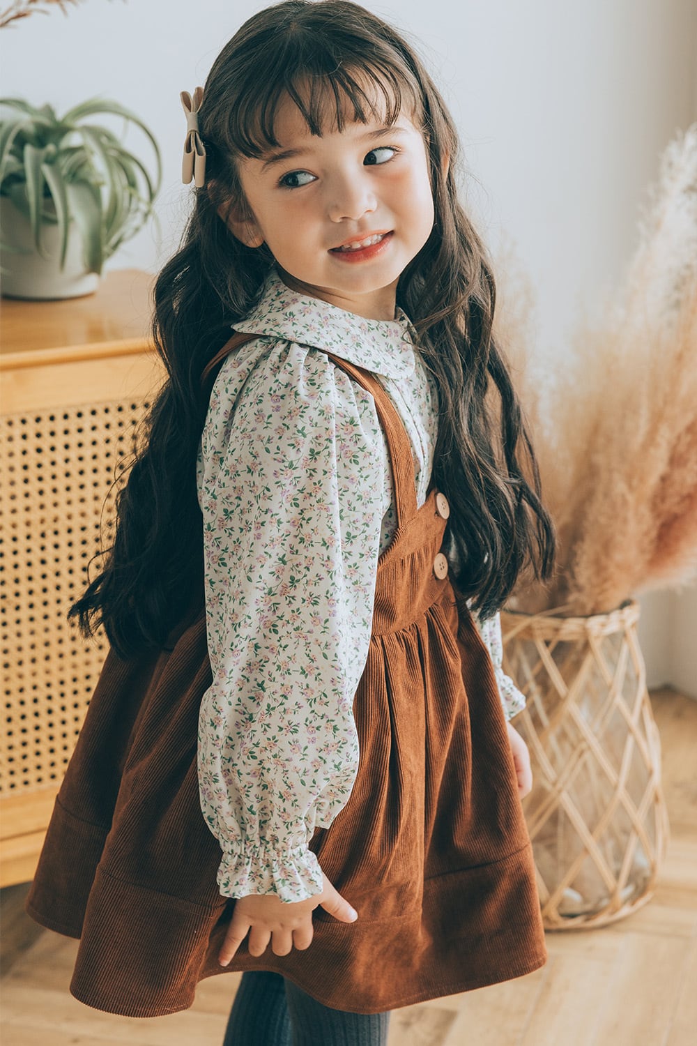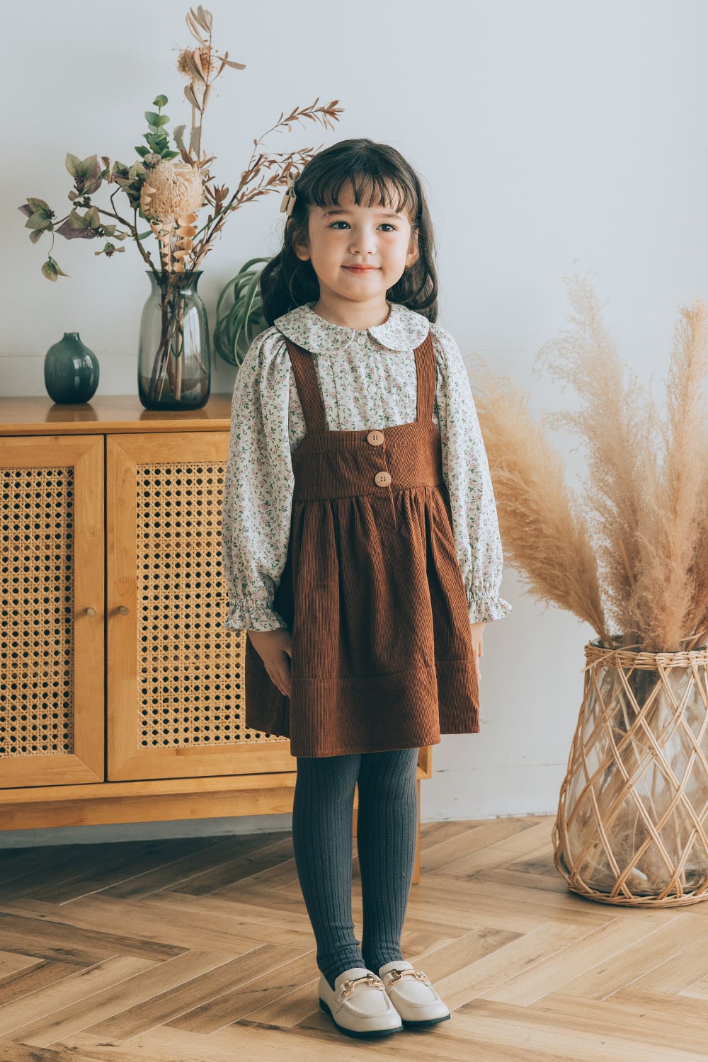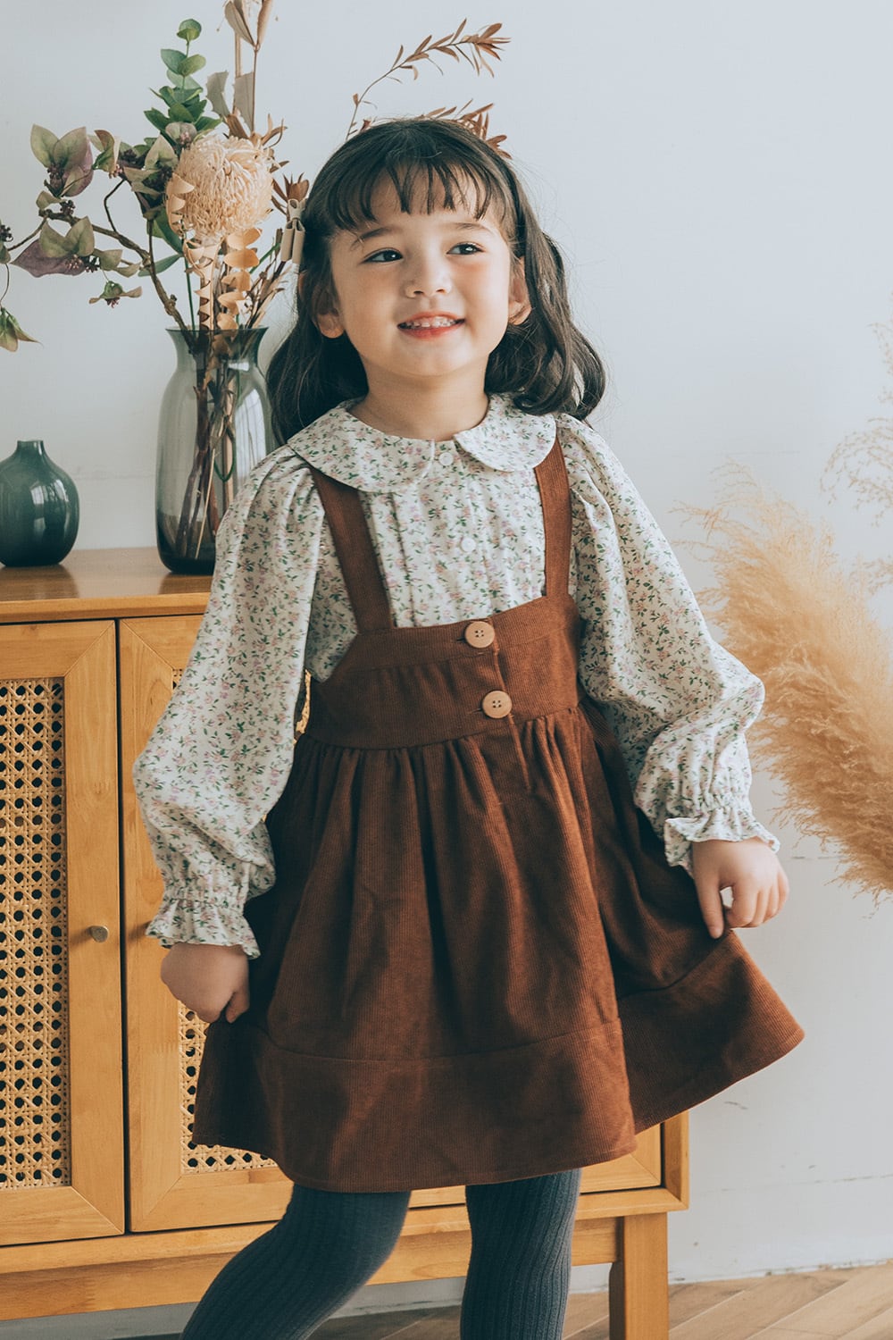 背中でクロスさせた肩紐はずり落ちにくいので、ジャンパースカートのような感覚でお召しいただけます。