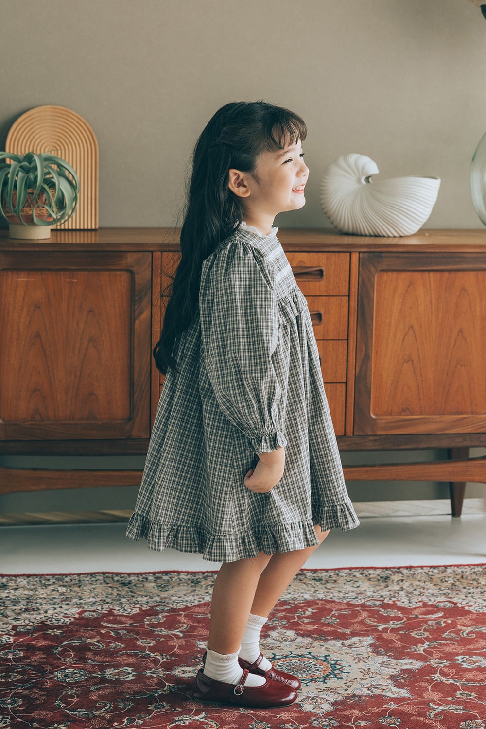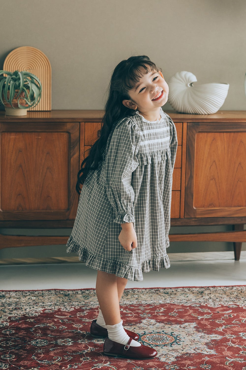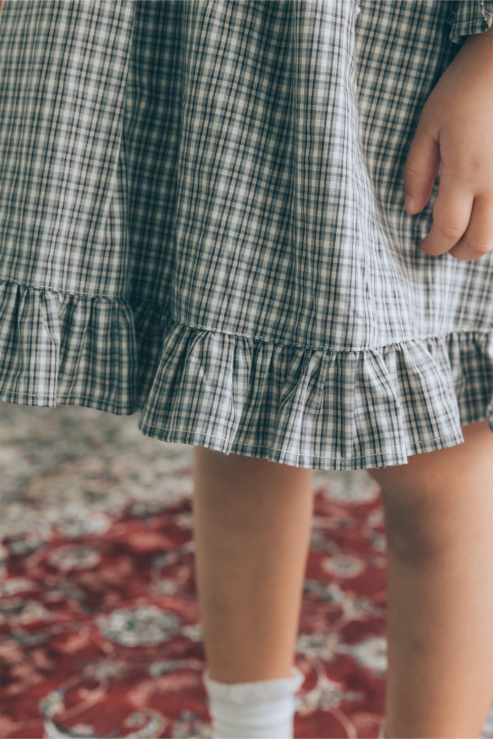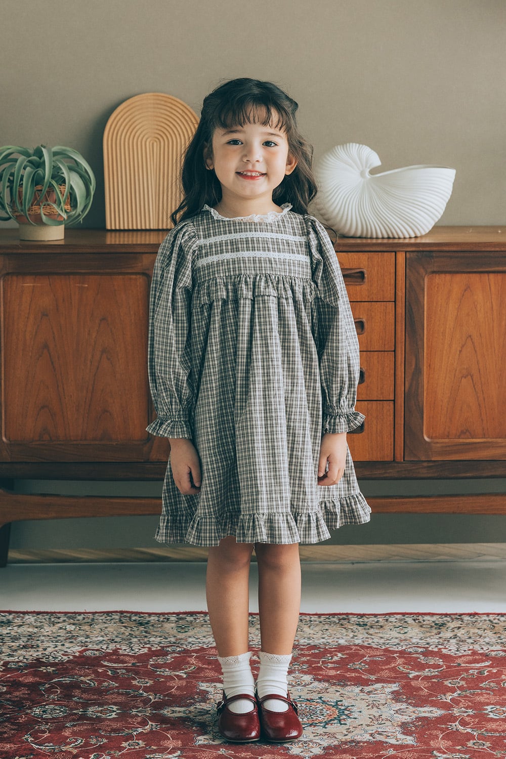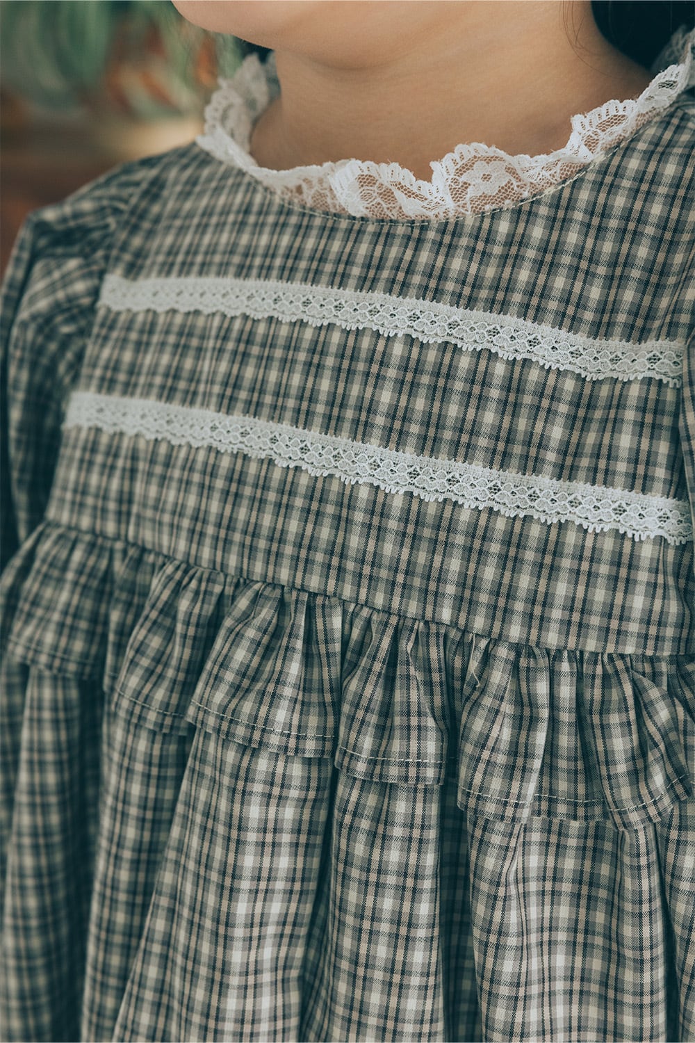 グレーチェックにレースを付けることで甘くなりすぎず、落ち着いた印象の中にも華やかさをプラスしてくれます。