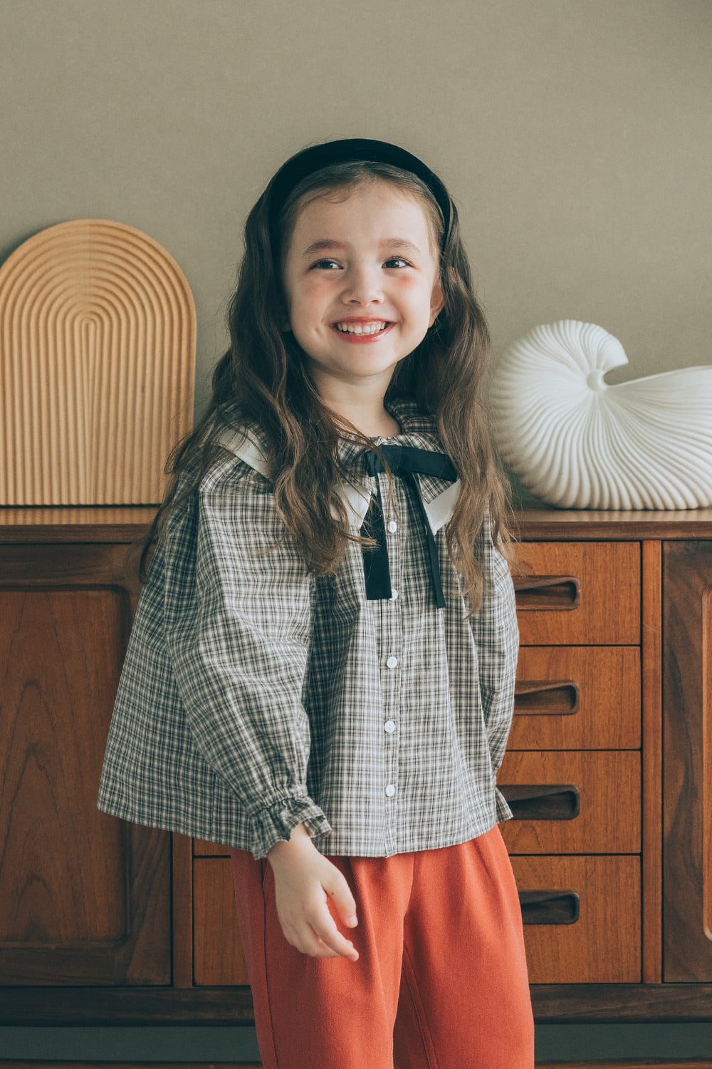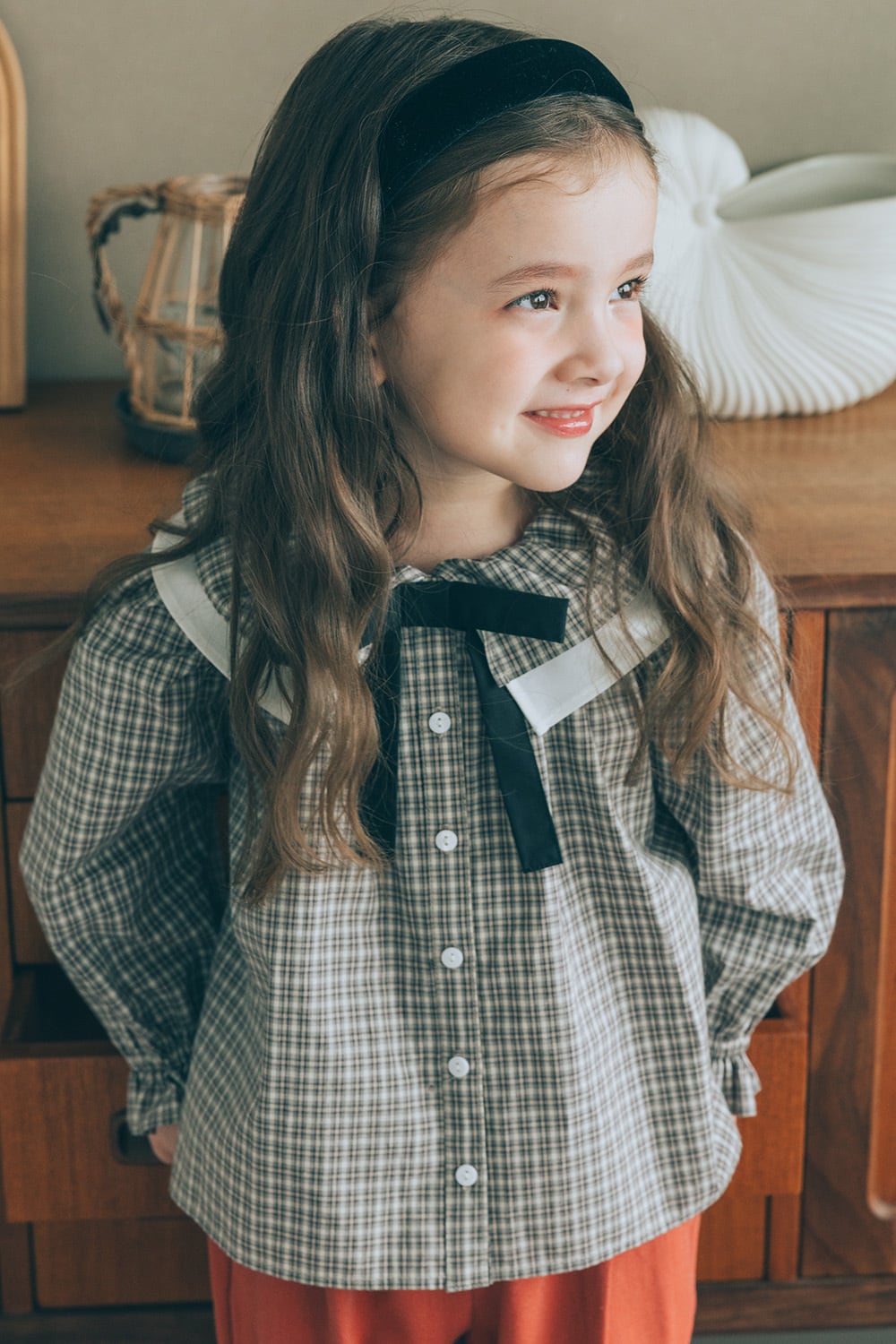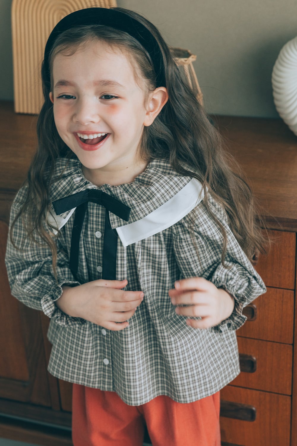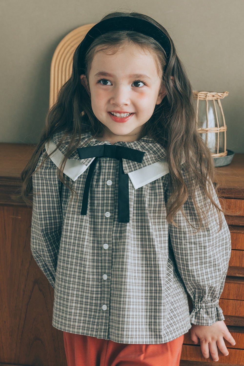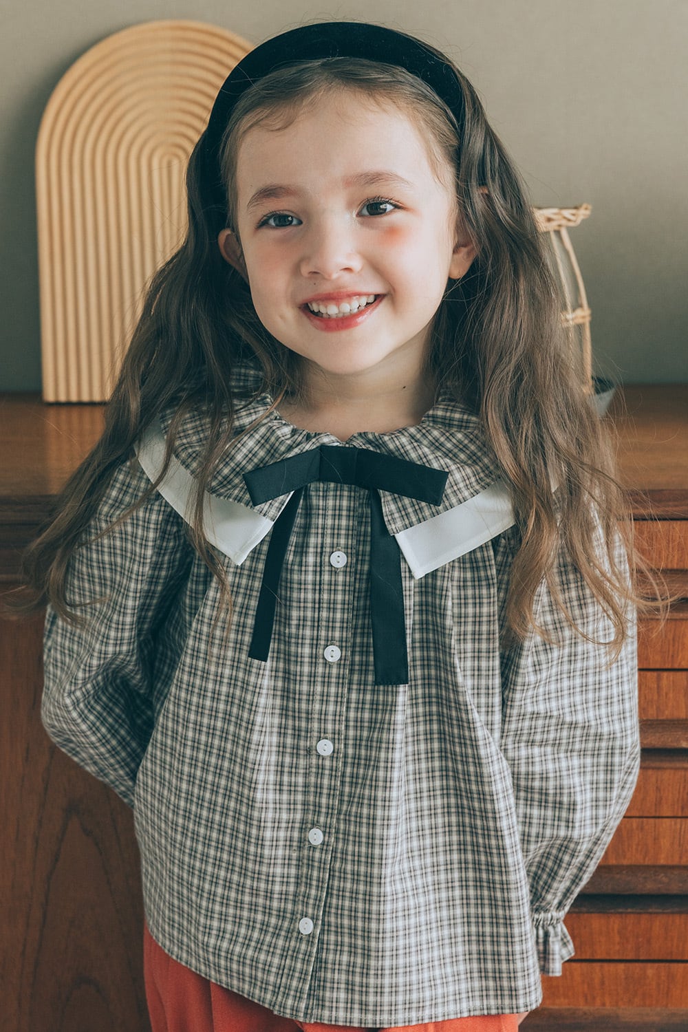 ダブル襟と大きめのリボンが顔周りを華やかにしてくれるブラウスです。