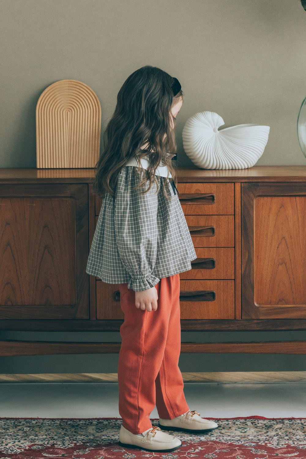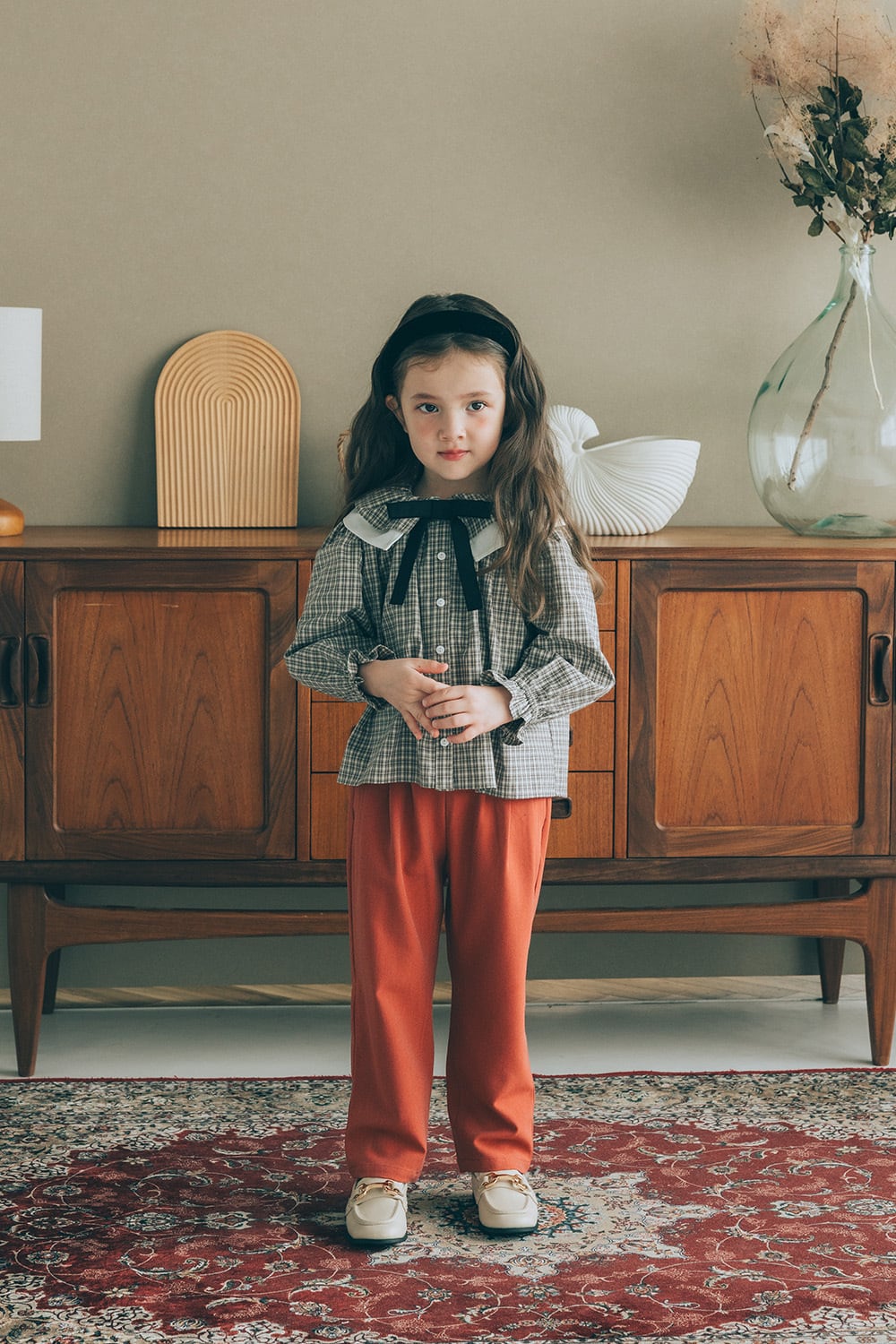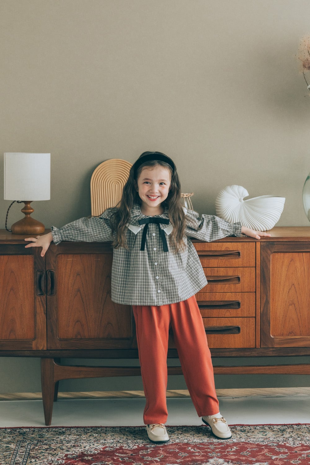 オシャレに格上げしてくれそうなグレーチェックは落ち着いたお色味なので、カラーボトムとも相性抜群です◎