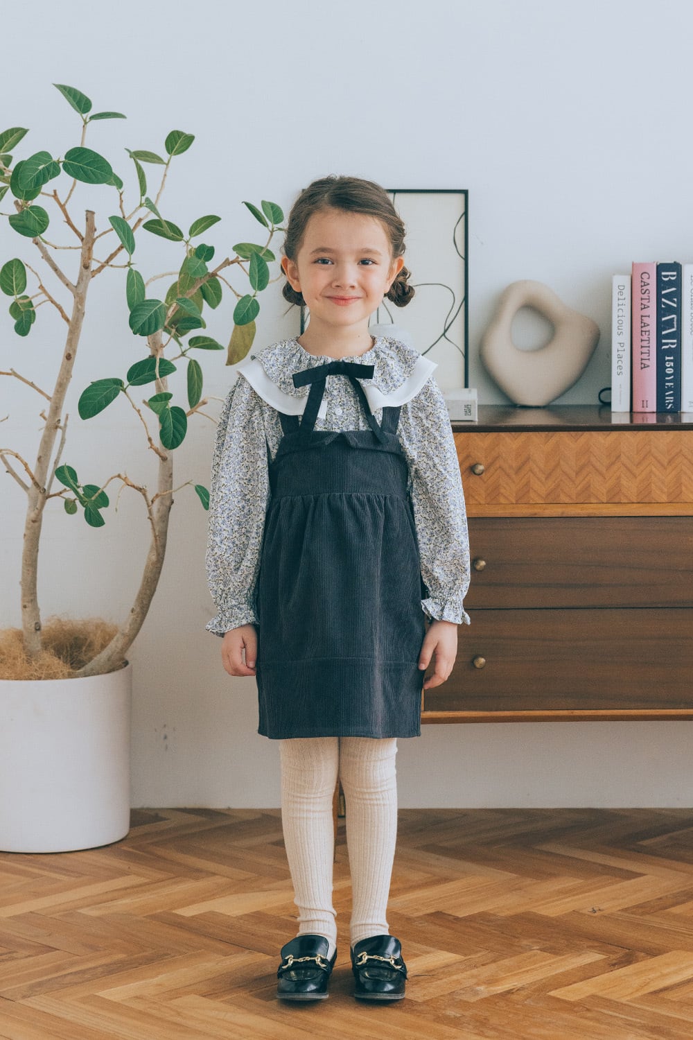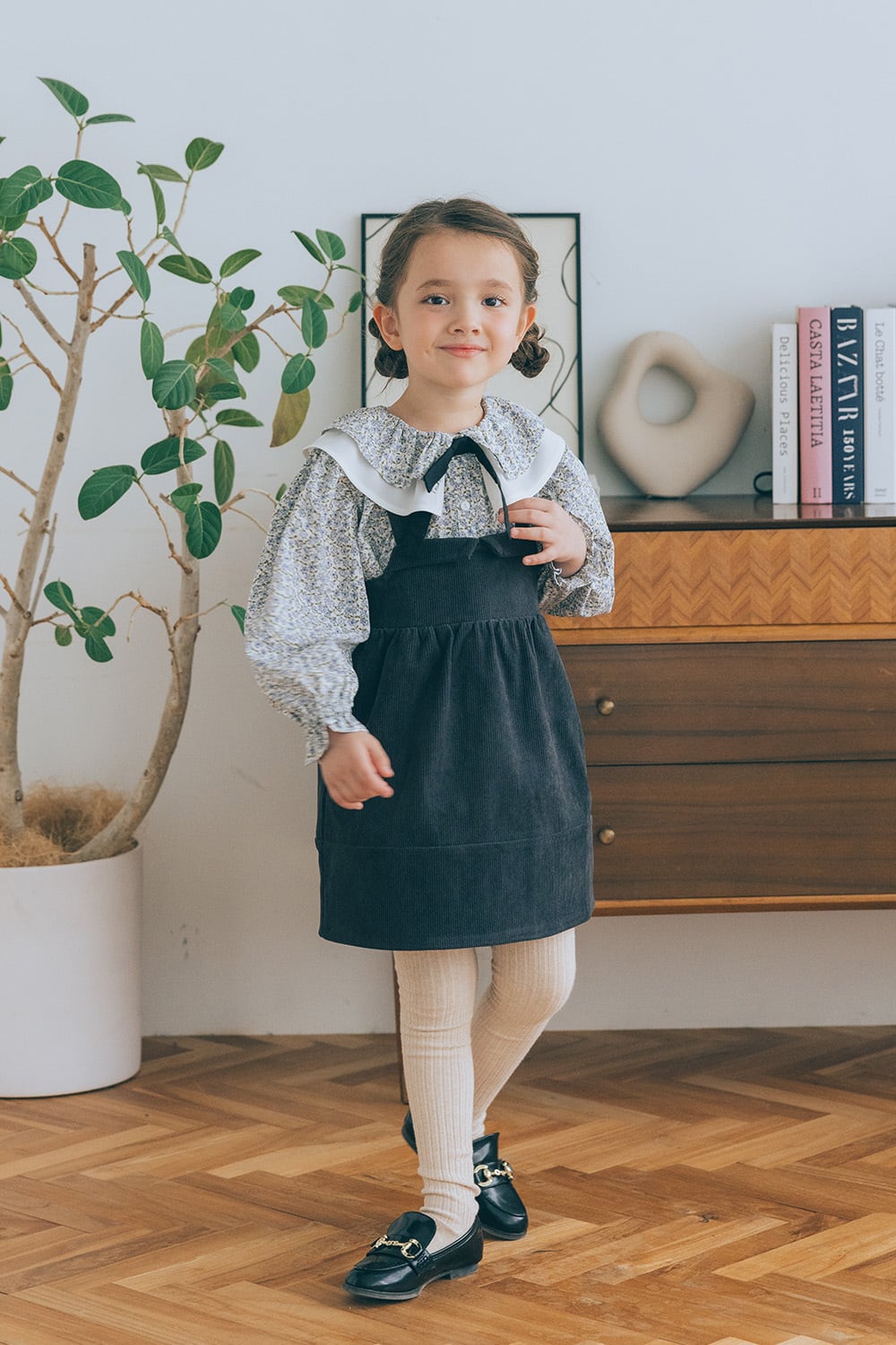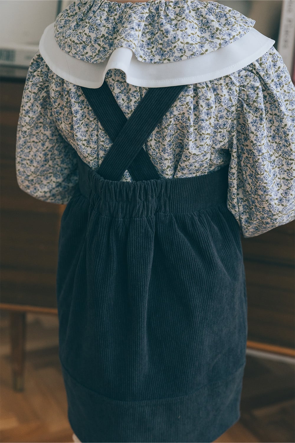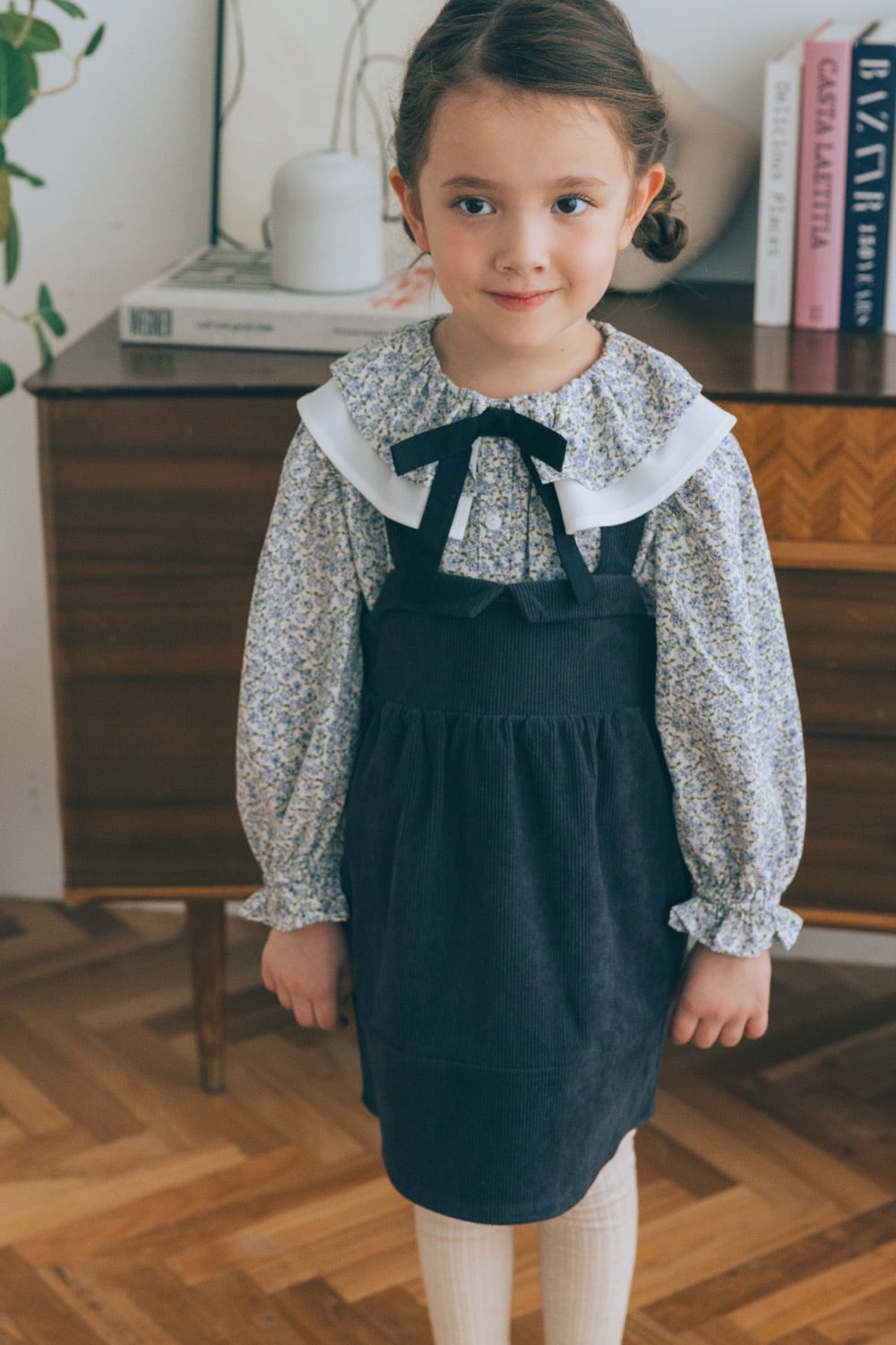 ・ダブルラッフル襟リボンブラウス <Blue flower>