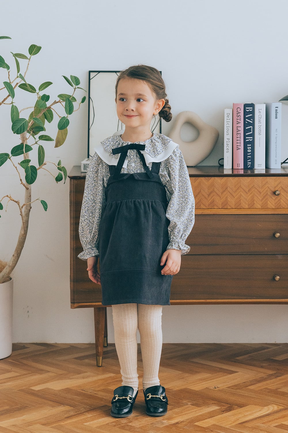 ・ダブルラッフル襟リボンブラウス(blue flower)