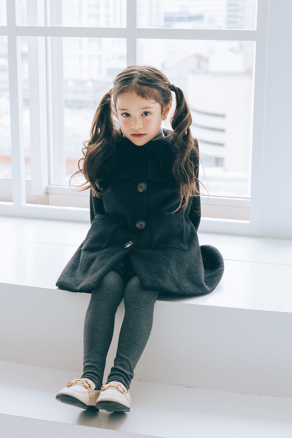 スクエア襟と大きめのリボンがポイントのコートは、1枚で華やかで女の子らしさたっぷりのデザインなので、この冬沢山着ていただきたいコートです♫