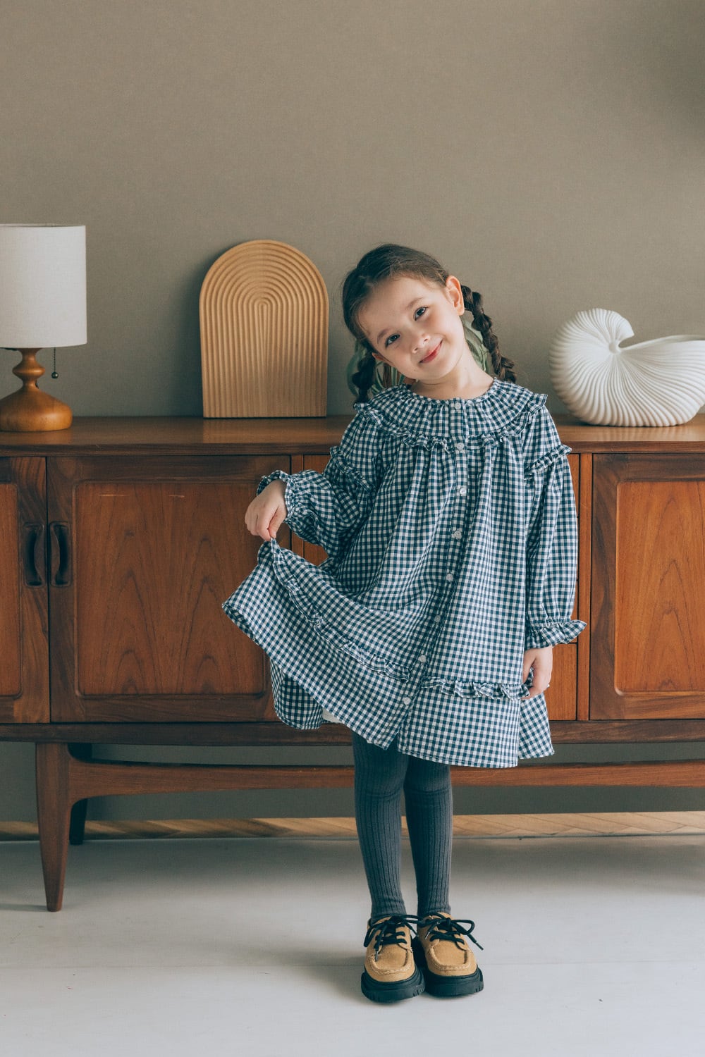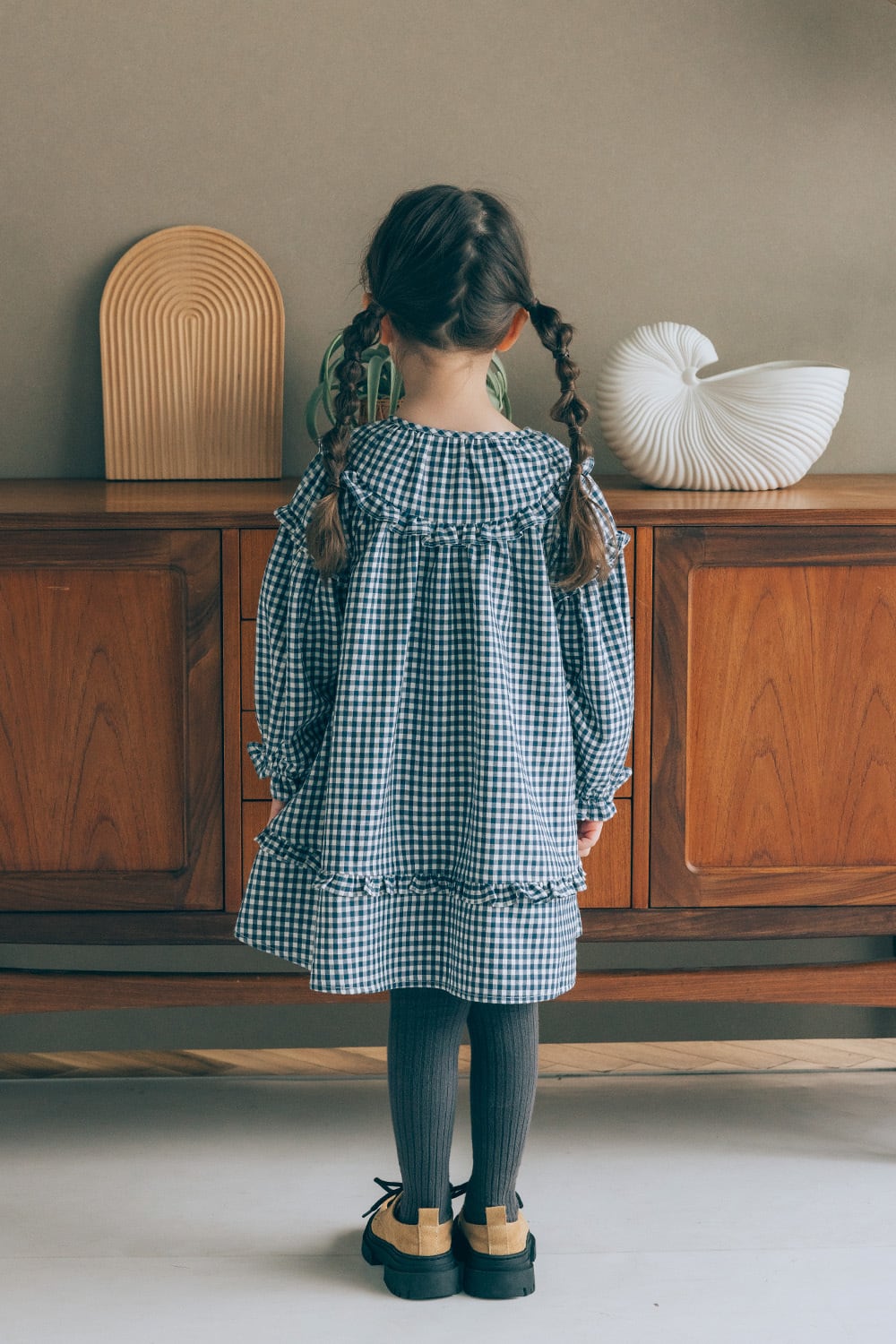・Wフリルギャザーワンピース〈Navy check〉- 1点