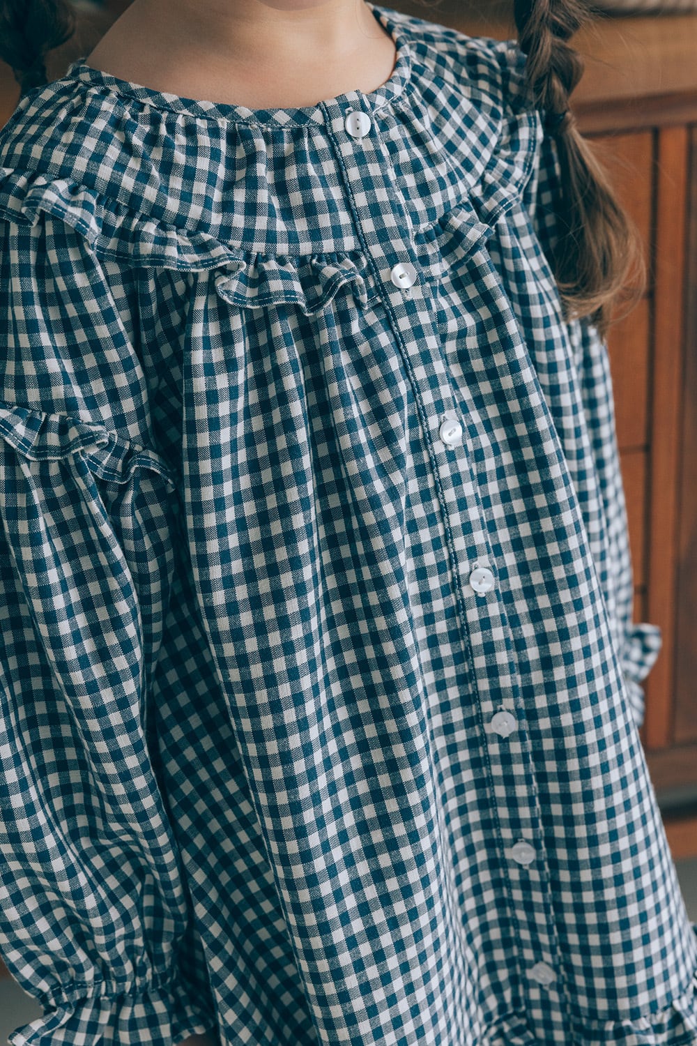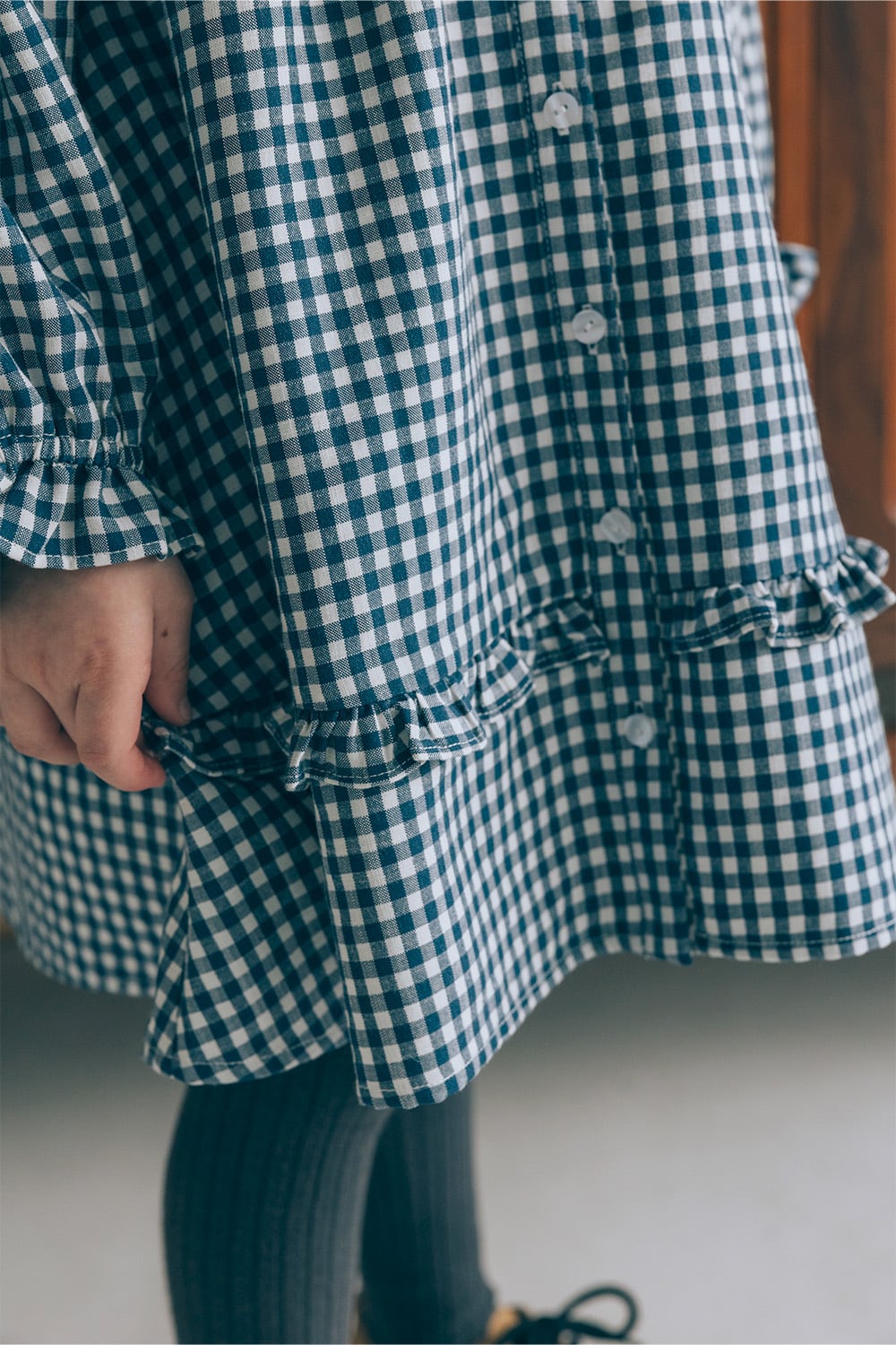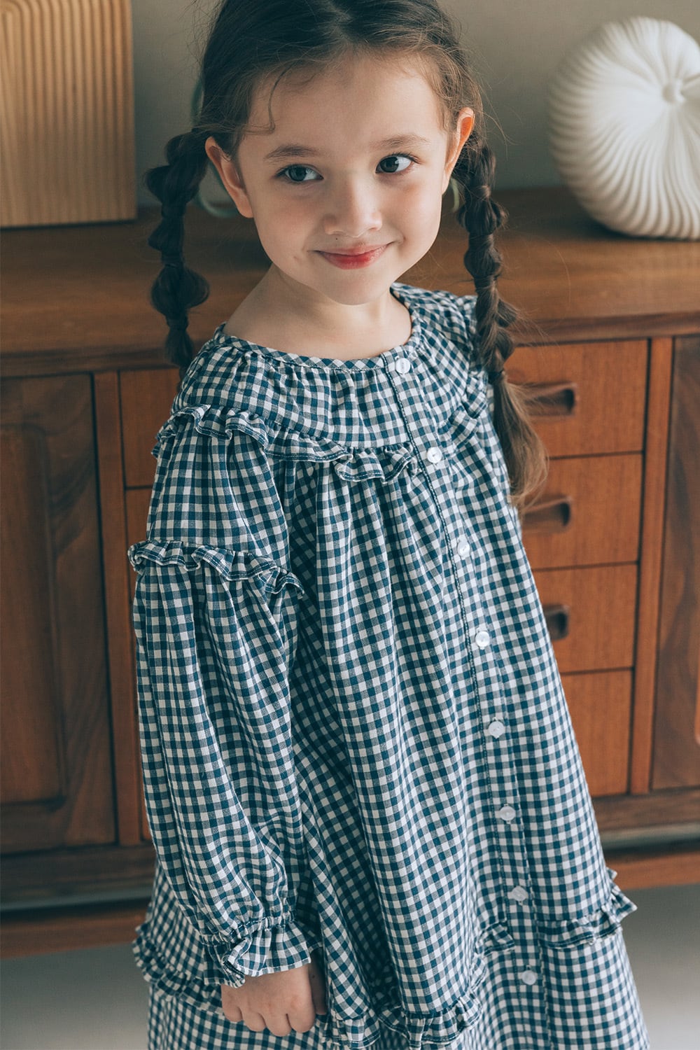 ▼Wフリルギャザーワンピース〈Navy check〉詳細