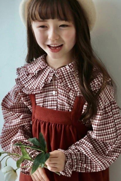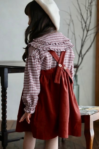 ややシャリ感のあるサラッとしたレッドチェック柄の生地はお子様の可愛さを更に引き立ててくれます♪
