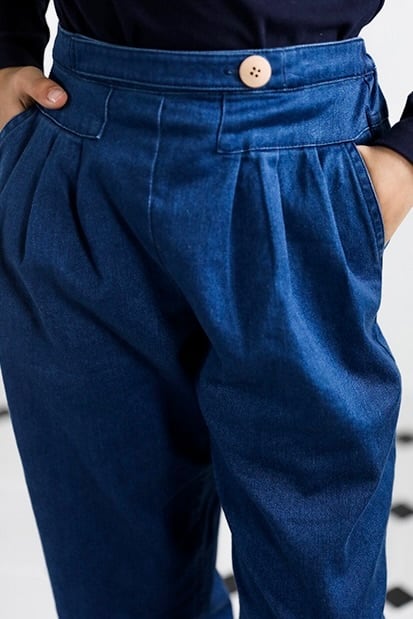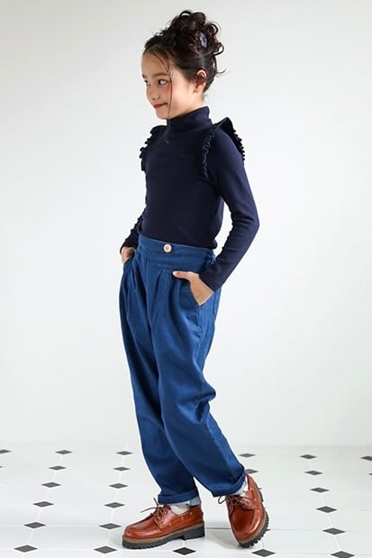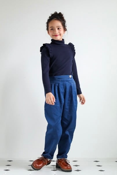 ウエスト下の切替からタックを入れシルエットにこだわった大人顔負けのパンツ。