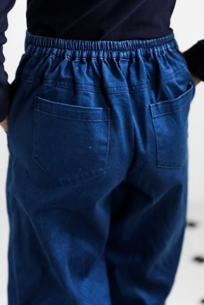 大人のパンツをそのまま小さくしたようなデザインですが、ウエストはゴム仕様なのでそのままスポッと履けてお着替えもしやすいです。