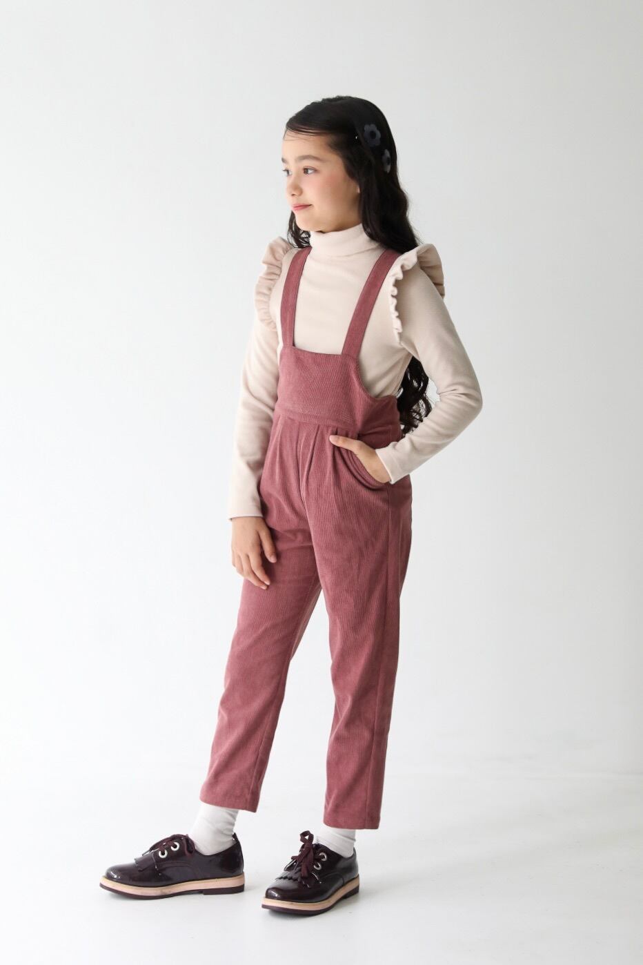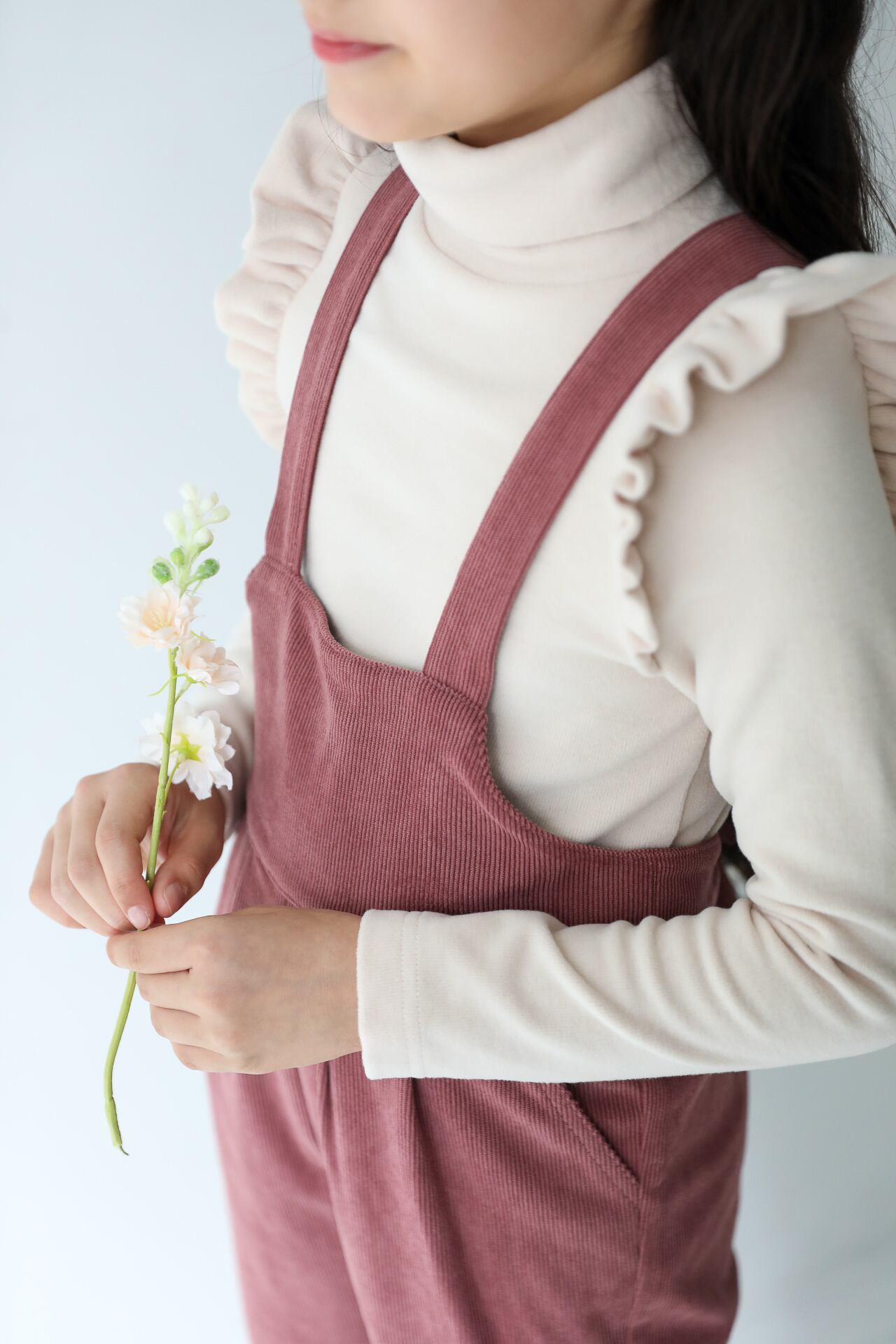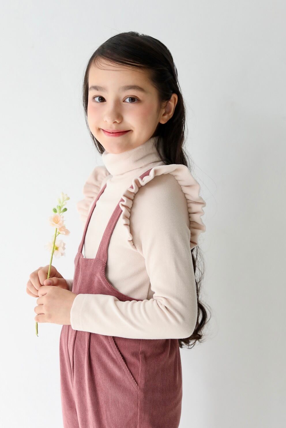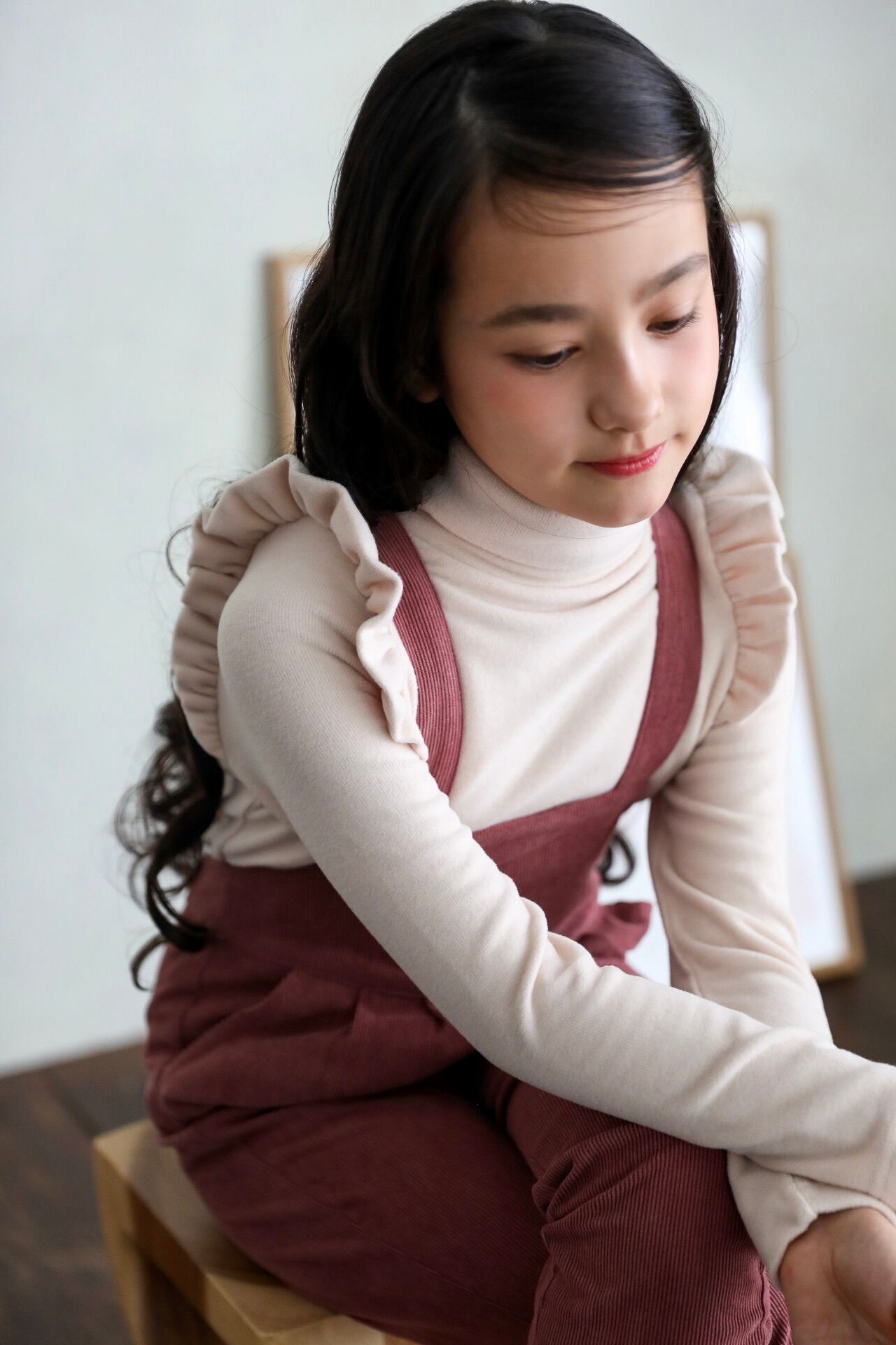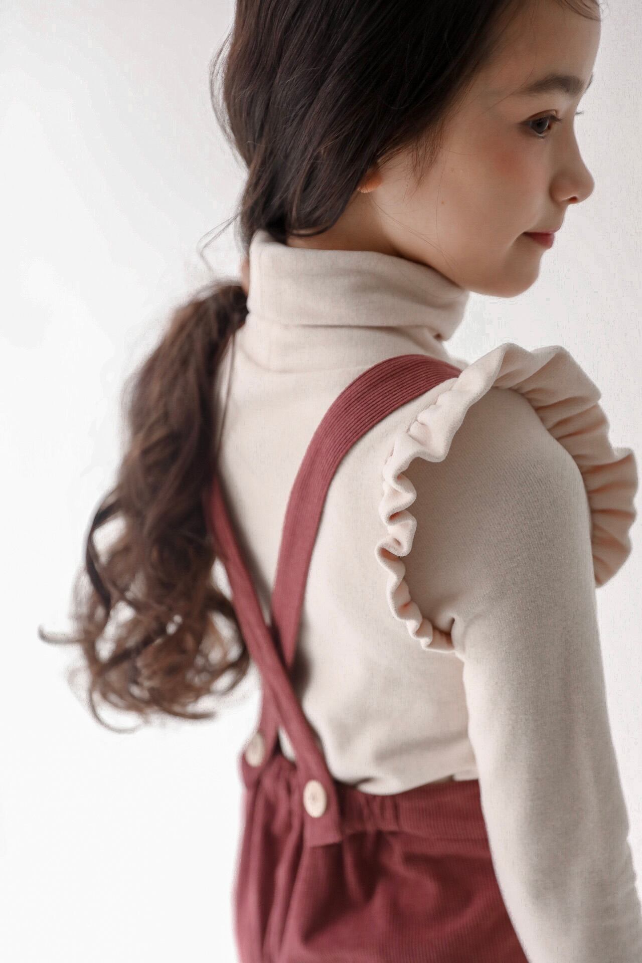 1枚で着ても様になりますが、サスペンダーがあるitemと合わせるとフリルが際立って更に可愛くなります。
