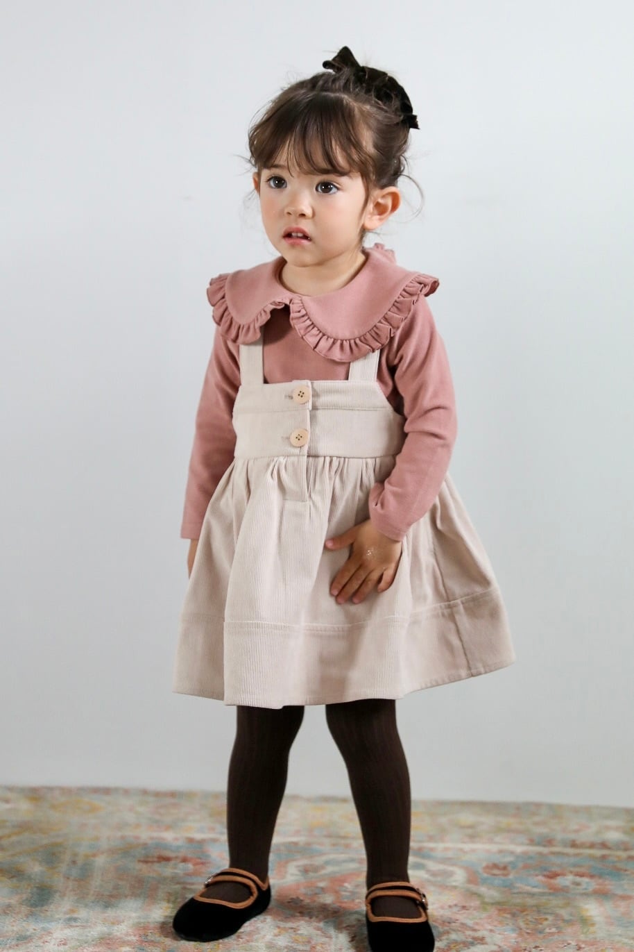 長く着ていただけるように肩紐の長さは後ウエストの釦で3段階調整できるようになっています。