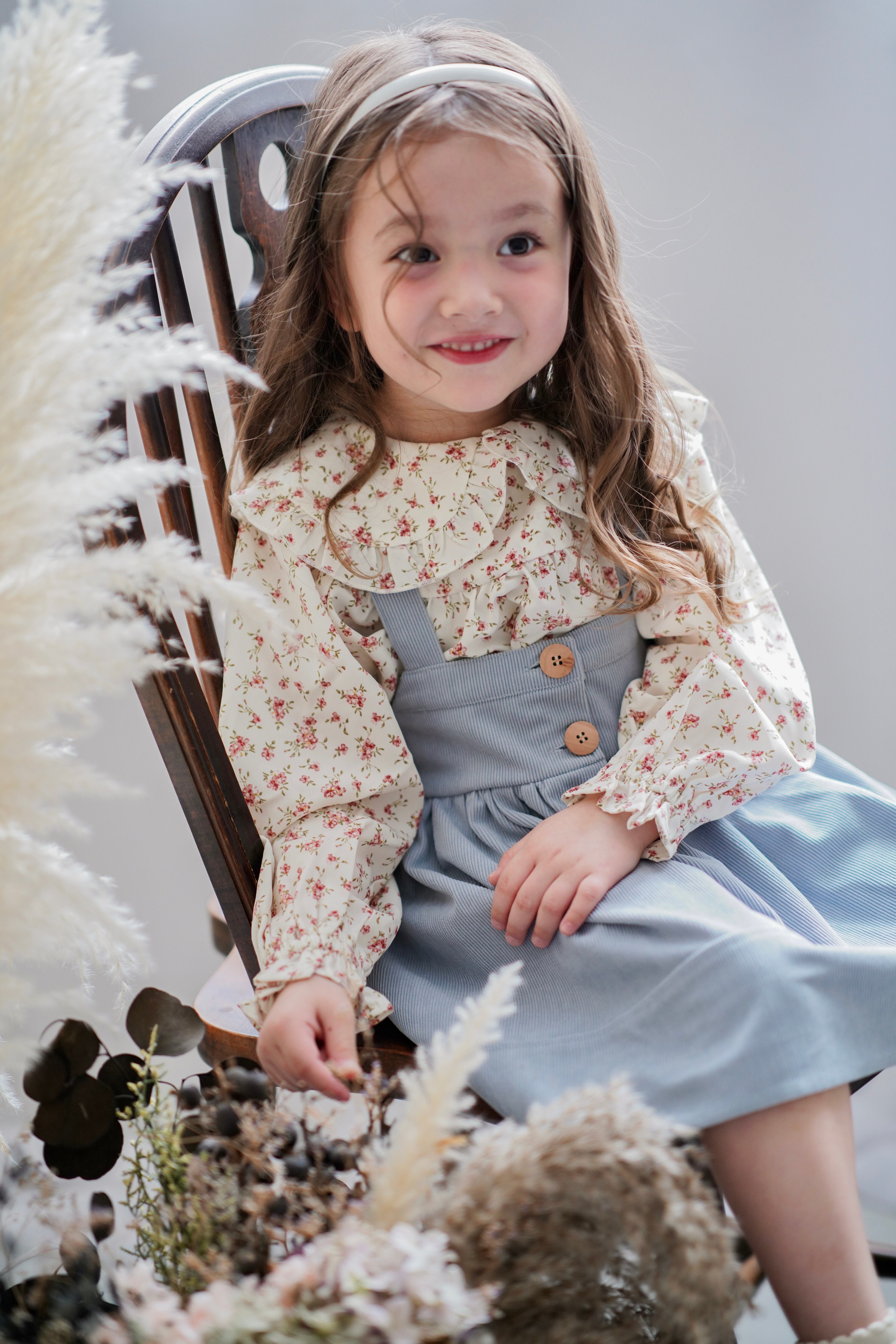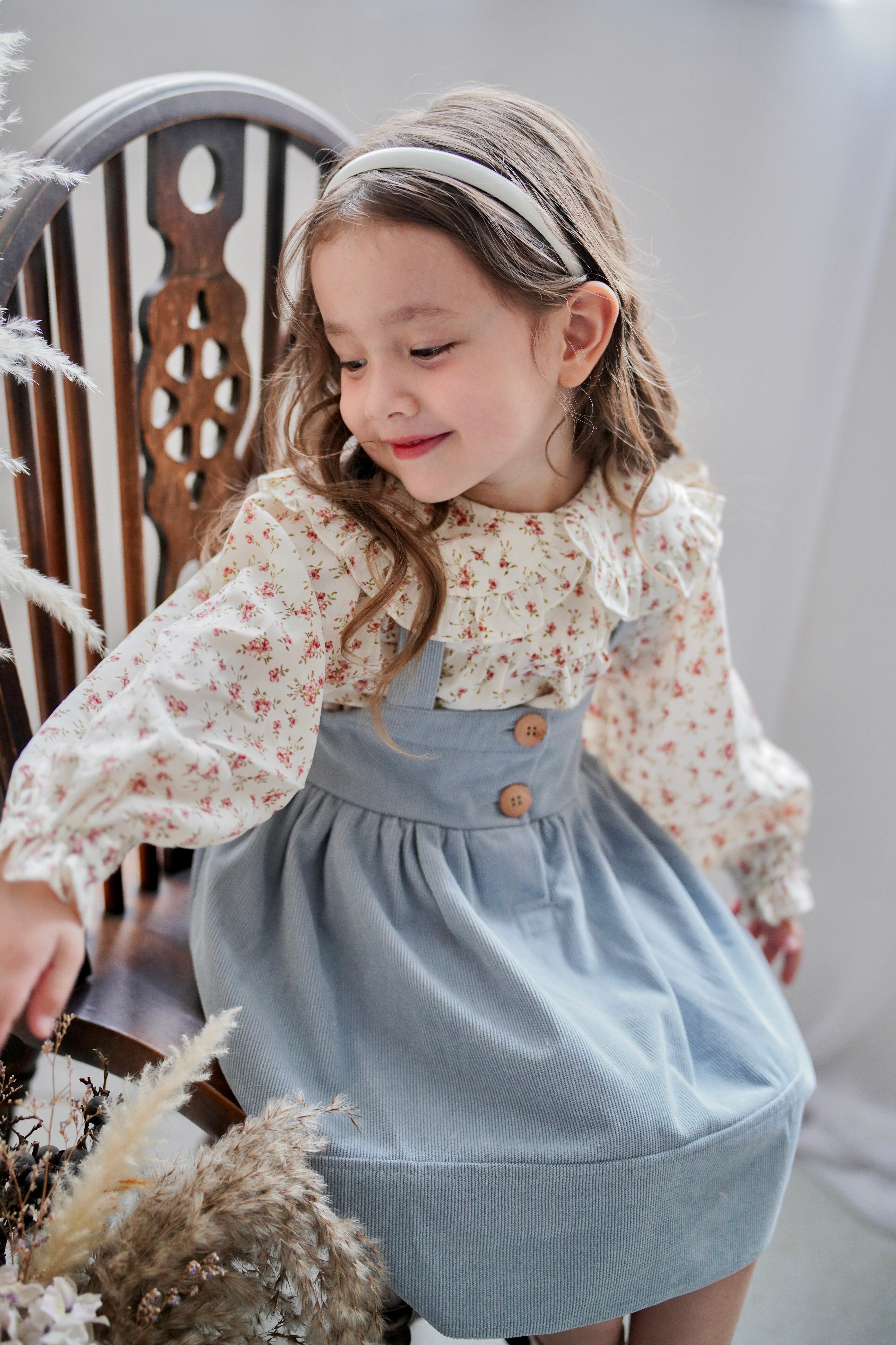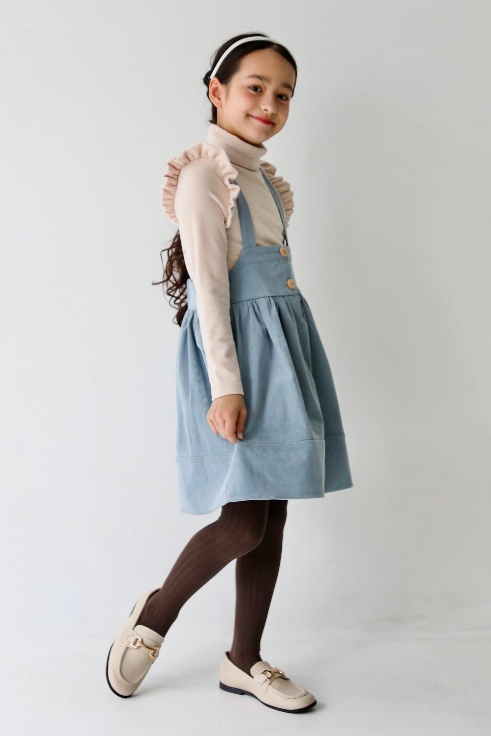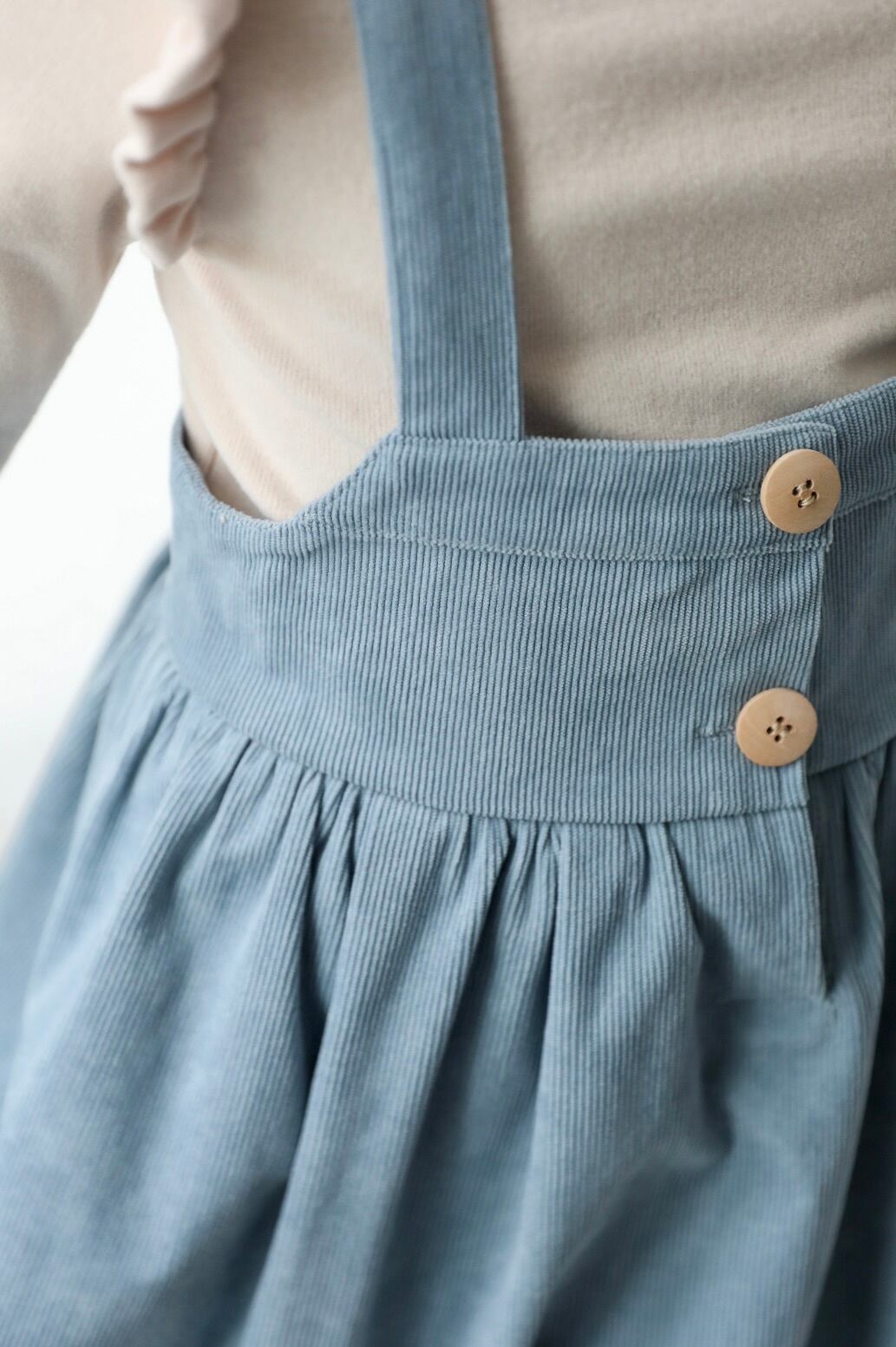長く着ていただけるように肩紐の長さは後ウエストの釦で3段階調整できるようになっています。