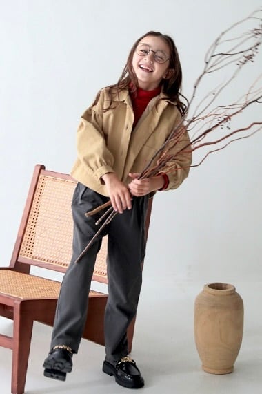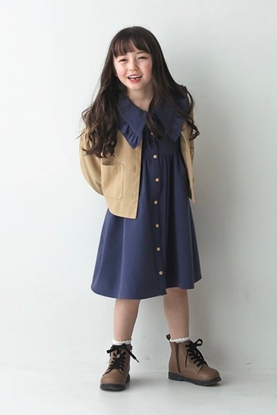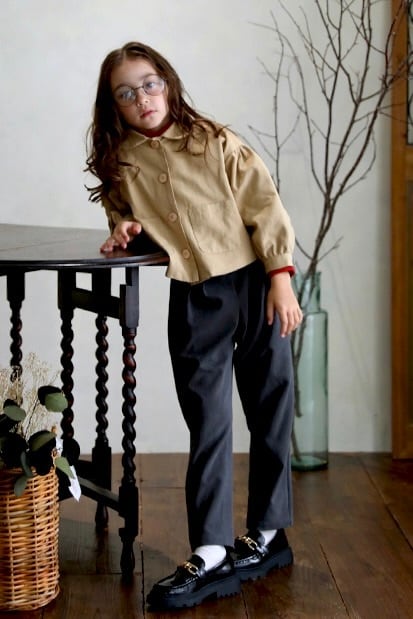 お袖がふんわりして女の子らしいデザインのジャケットはピンク、ベージュの3色です。