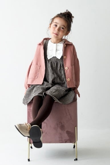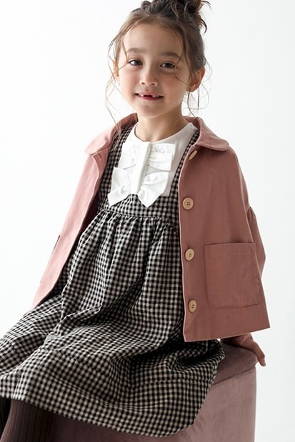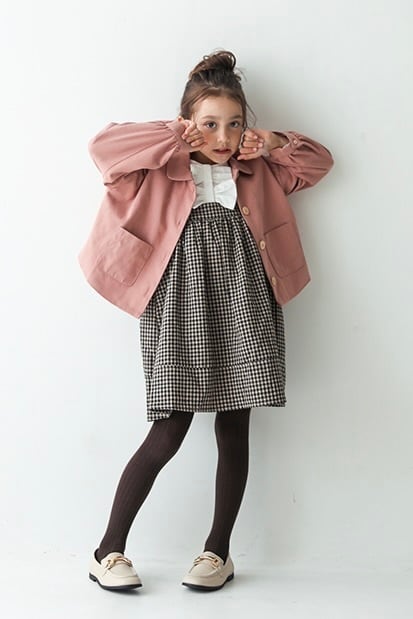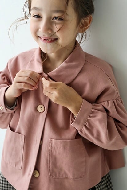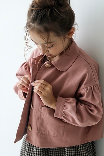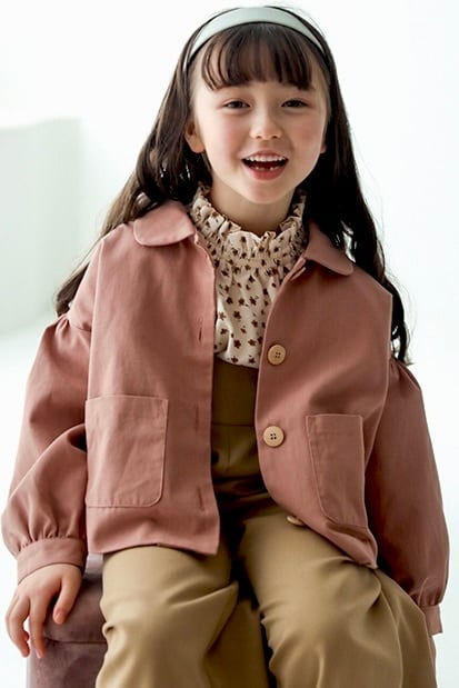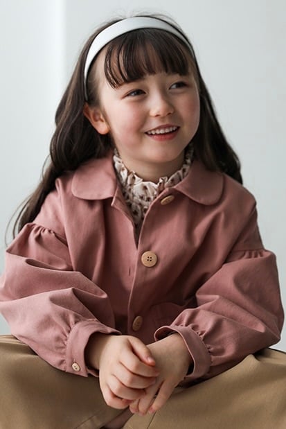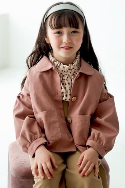 お袖がふんわりして女の子らしいデザインのジャケットはピンク、ベージュの2色です。