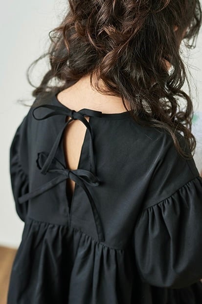 ワンピースは普段でもお使い頂けるようにシンプルながら、バルーンでフォルムをつけて他にはないブラックワンピースに。