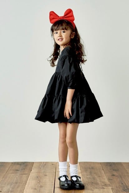 後ろリボンやティアードシルエットで可愛いを盛り込みつつも、甘すぎないので小物を変えて着回しもしやすい1枚です。