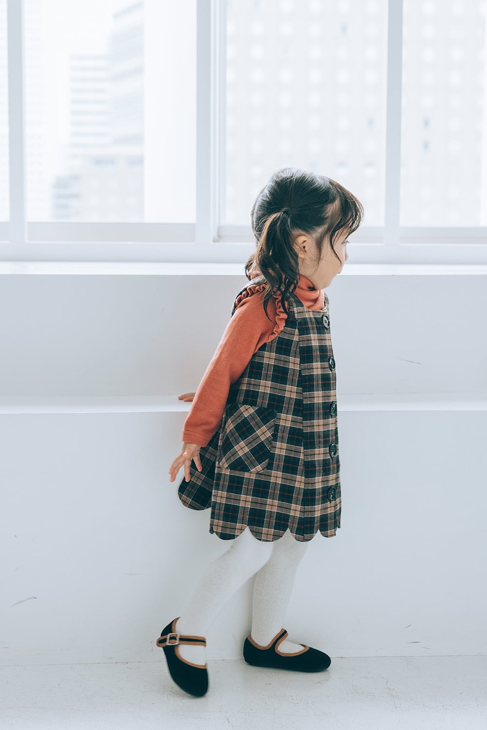 裾のスカラップがポイントの一味違うジャンパースカート。