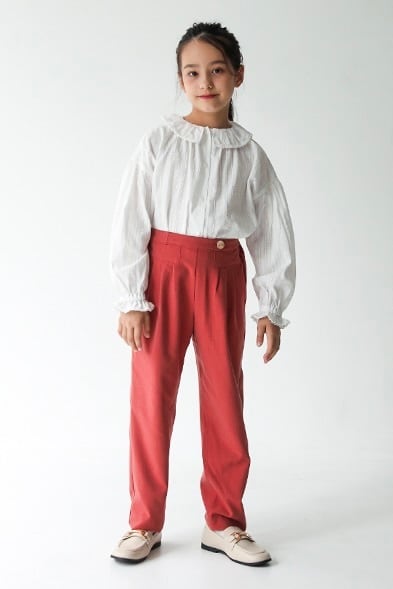 ウエスト下の切替からタックを入れシルエットにこだわった大人顔負けのパンツ。